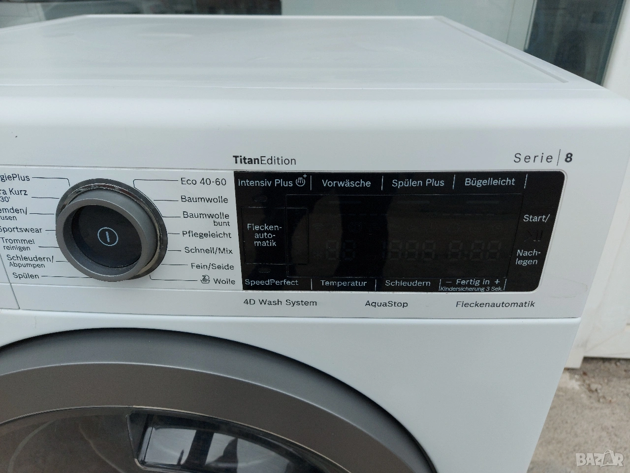 Пералня BOSCH 8 Serie Titan Edition Цена:350евро 4D Wash System Нов модел Intensiv Plus Капацитет на пране 9 кг. Енергиен клас А+++ 1400 оборота Дисплей Инверторен мотор Нов актуален модел Стандартни програми: Памук 60 °, памук 40 °, Кратка програма, деликатни Супер кратка 15мин. програма Специални програми: Clean алергия Plus, блузи, ризи, ръчно пране, анти-петно,фини / коприна VarioPerfect: времеви или енергийни оптимизиране на програми за перфектен резултат при пране. Контролните бутони: за включване / изключване, предварително почистване, изплакване плюс, настройка на скоростта, температура, старт / пауза, SpeedPerfect, EcoPerfect Отложен старт Тиха работа Възможност за съкращаване на всяка една от програмите Защита от протичане Внос от Германия Произведена в Германия Гаранция 6 месеца. Гаранционен и извън гаранционен сервиз Безплатна доставка за Смолян