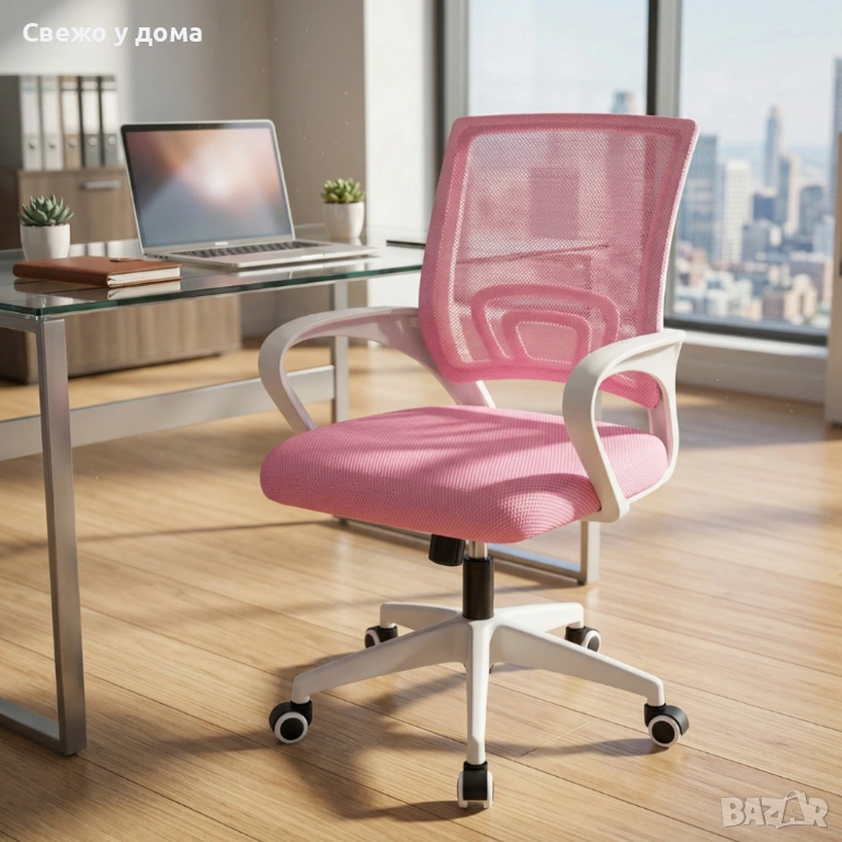 Ергономичен розов офис стол с дишаща мрежа и регулируема височина – комфорт през целия ден → Обява 54213315