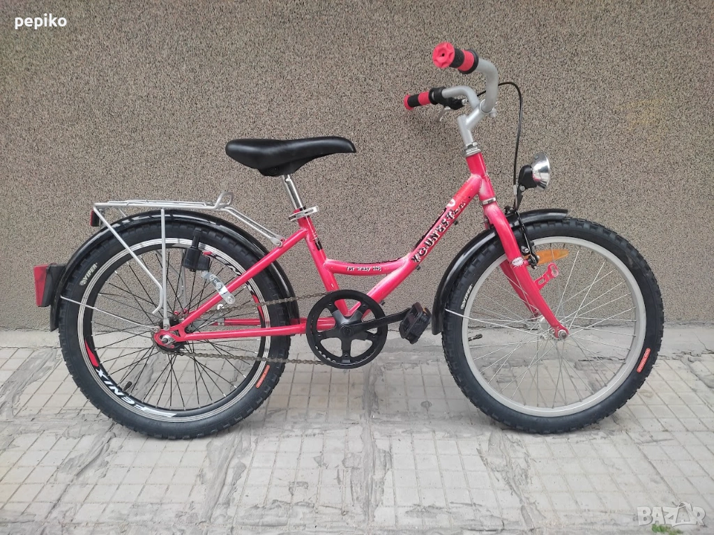 Употребяван детски велосипед WICHITA 20 цола,метална рамка STEEL 20 цола с една скорост,метални курбели,пластмасови педали,метални калници,метален багажник,никилрано колче на седалката,спортна седалка,кормило STEEL,задна главина никилирана с контра,предна вибрейк спирачка,задна двойностенна усилена алуминиева черна капла,предна усилена алуминиева сребърна капла,предна алуминиева главина,гуми със спортен грайфер КЕНДА 20 х 1,95,осветление от пред с динамо,размер на рамката 28 х 40 см.тегло 14,5 кг ГА -5-0 Е Повече инфо на