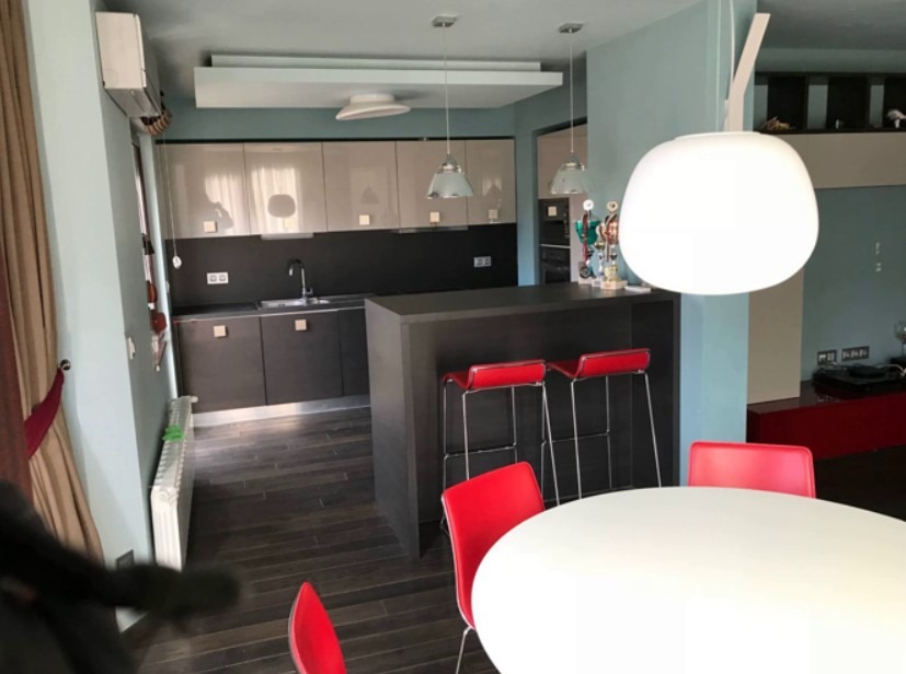 Имотът е обзаведен, с площ 100 кв.м, на 2-ри от 3 етажна сграда. Разпределението включва входно антре, дневна с кухня и трапезария, спалня, баня с тоалетна, тераса и двор.