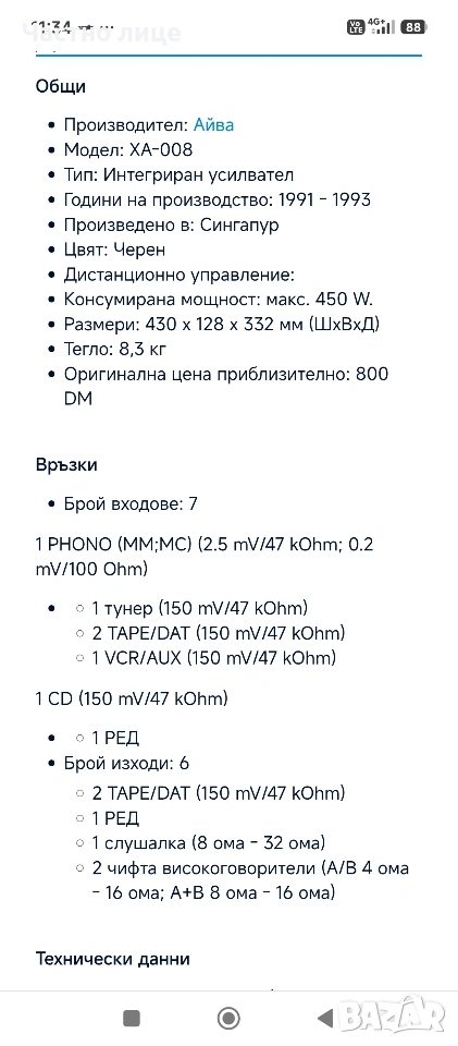Усилвател "Aiwa"XA-008 → Обява 54213505