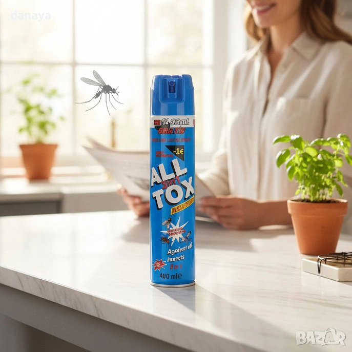 6594 Спрей против насекоми ALL TOX 3в1, мощна защита срещу мухи, комари и хлебарки, 400 мл