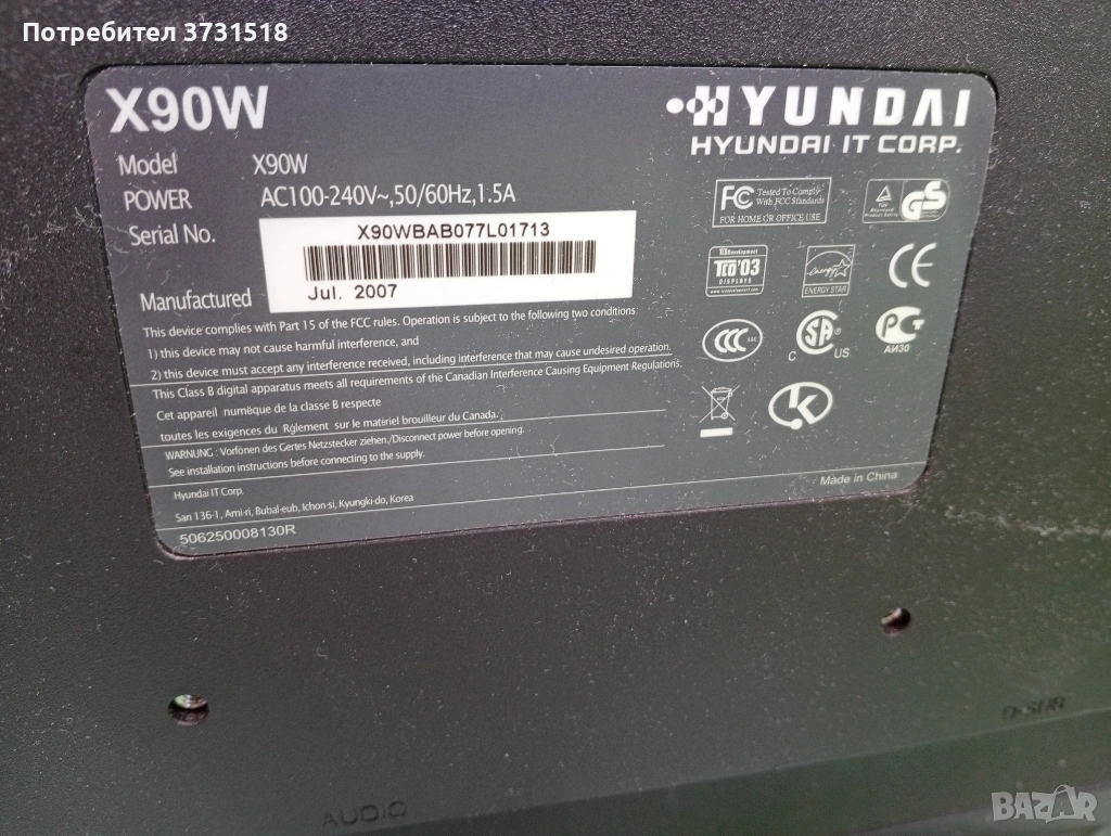 Отличен 19" монитор Хюндай, екран → Обява 54213664