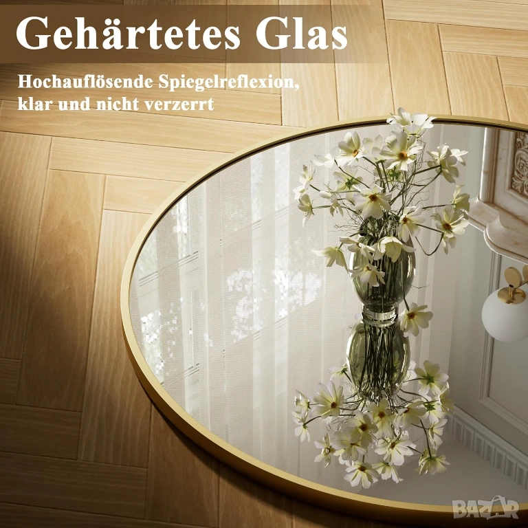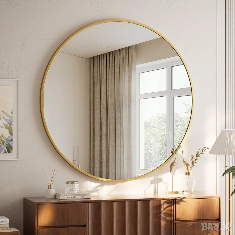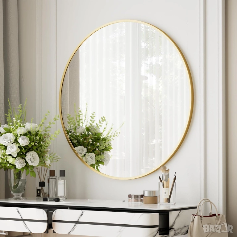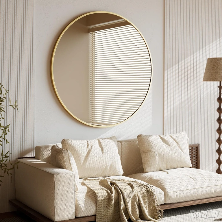 • Елегантният кръгъл дизайн на това стенно огледало с текстурирана алуминиева рамка е перфектен акцент във всяка стая.