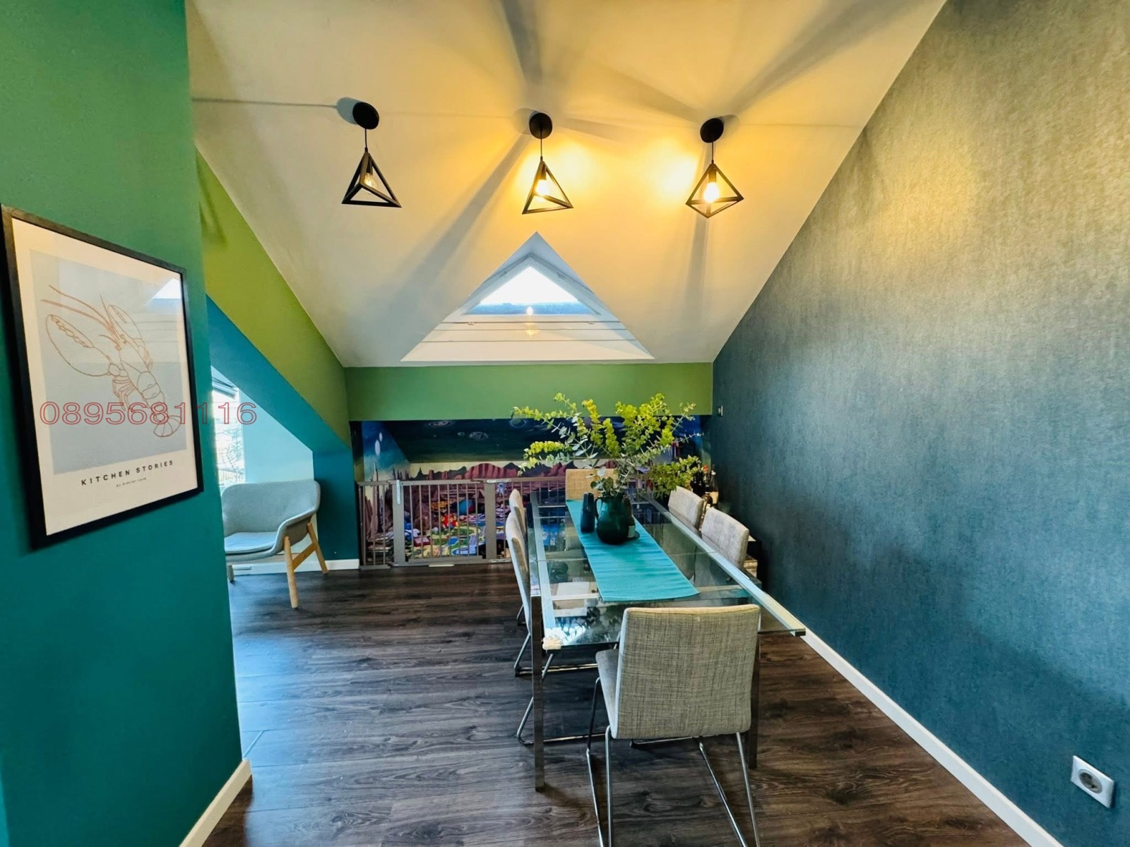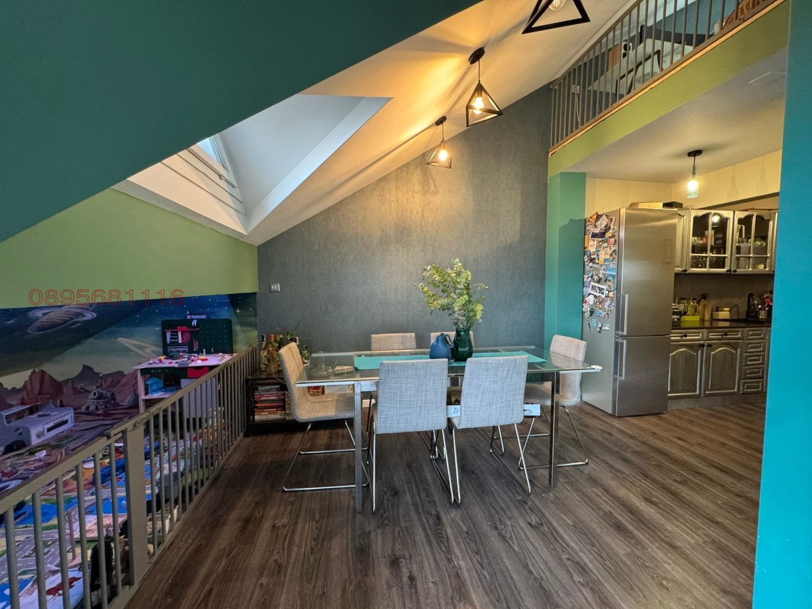 Детският кът е заграден, изрисуван от художник, изцяло оборудван и обезопасен за весели игри, има смарт осветление и се вижда от целият апартамент, включително от второто ниво.