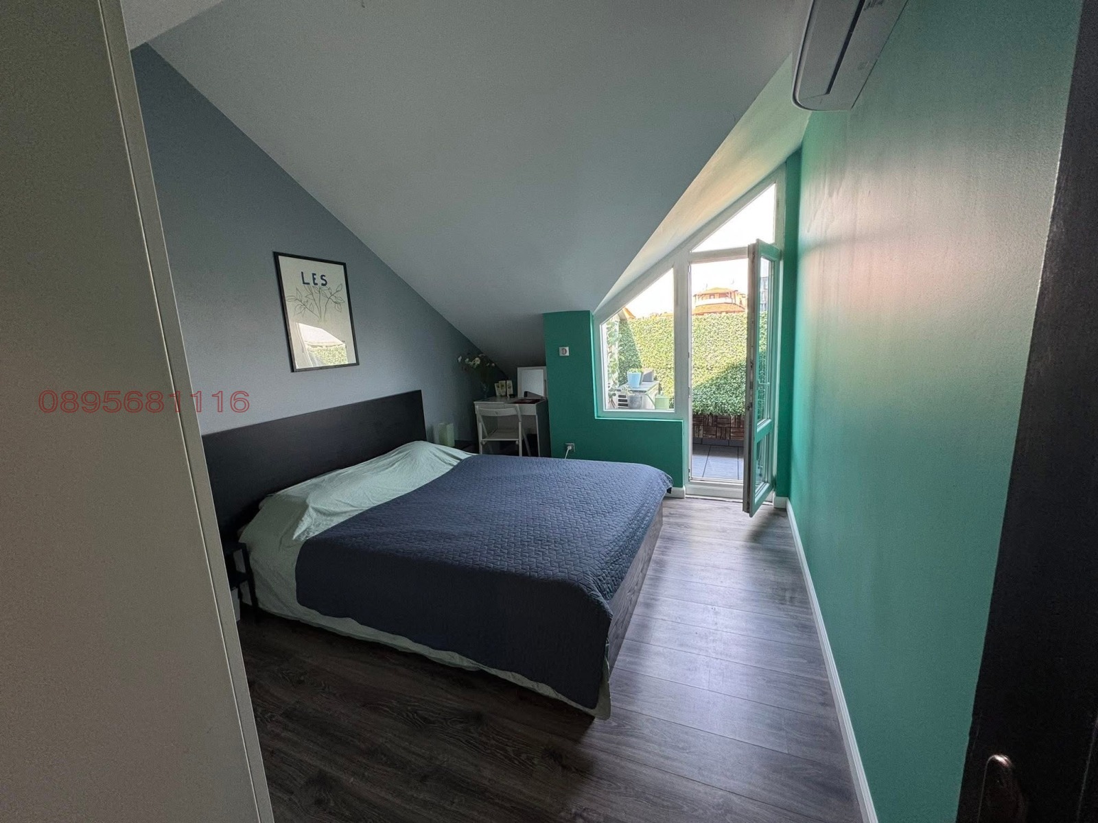 2 спални, баня с тоалетна, коридор, кухня, трапезария, хол, голям оборудван детски кът, работно ателие и две тераси по 8 кв.м.
