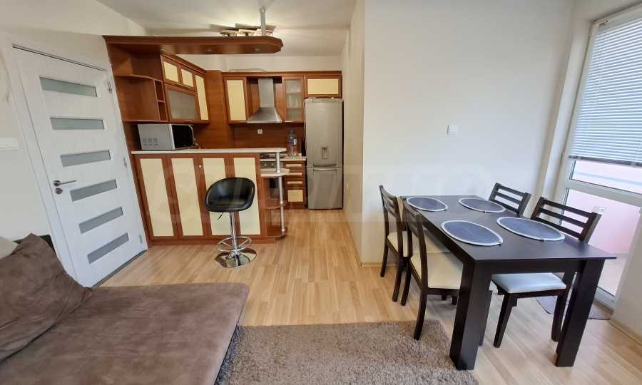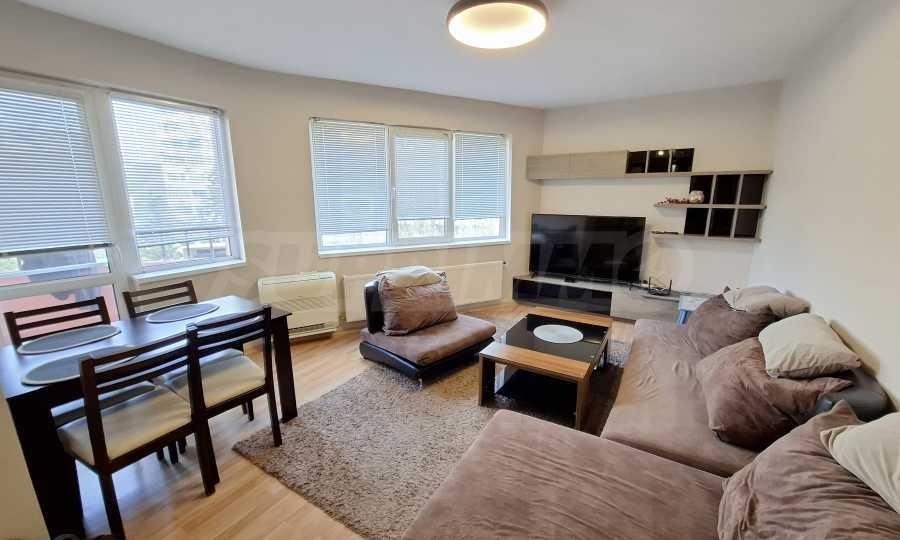 Апартаментът е в много добро състояние и е напълно оборудван с всички мебел и ел. уреди - пералня, сушилня, вградена фурна и плот с котлони, хладилник, бойлер, климатик и др. Идеален избор е за семейства.