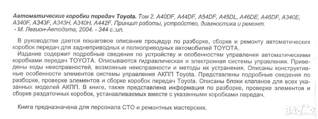 Тойота-авт. скоростни кутии-принцип на работа,устройство ,диагностика и ремонт /на CD/ → Обява 54213951