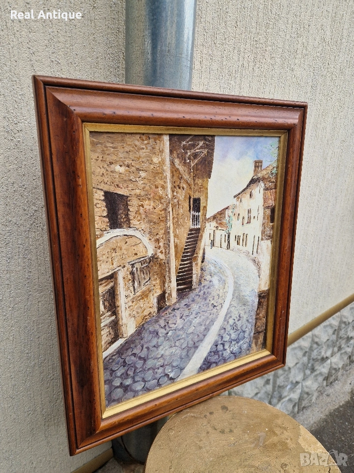 Продавам превъзходна много красива антикварна авторска майсторска картина масло върху платно в много добро състояние с чудесна дървена рамка. Размери 52 см на 42 см. Прекрасно допълнение към интериора на Вашия дом офис вила ресторант хотел. Подходяща и за подарък. Работя с всички куриери. Отговарям бързо.