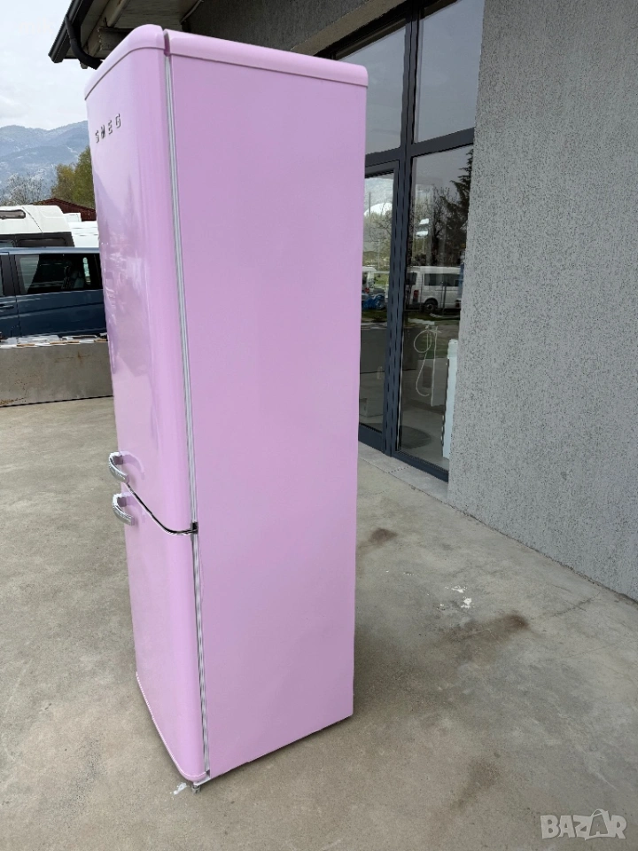 Розов хладилник с фризер SMEG. Перфектен външен вид и перфектно техническо състояние. Закупен от Германия. Произден за немския пазар. Дезинфекциран и готов за употреба.