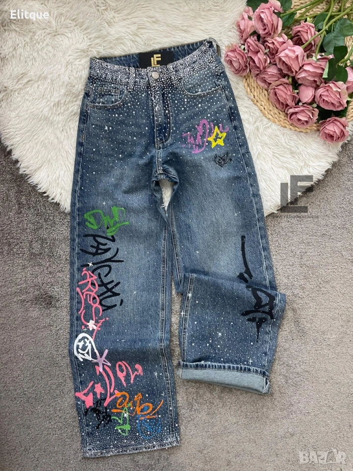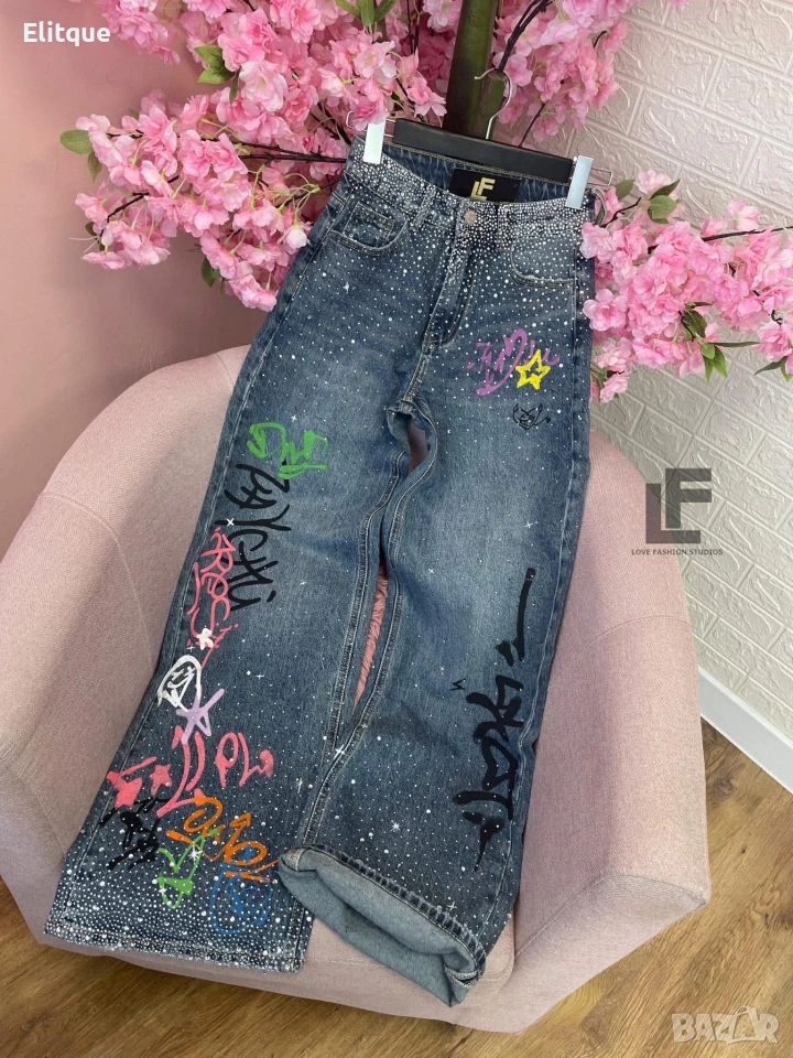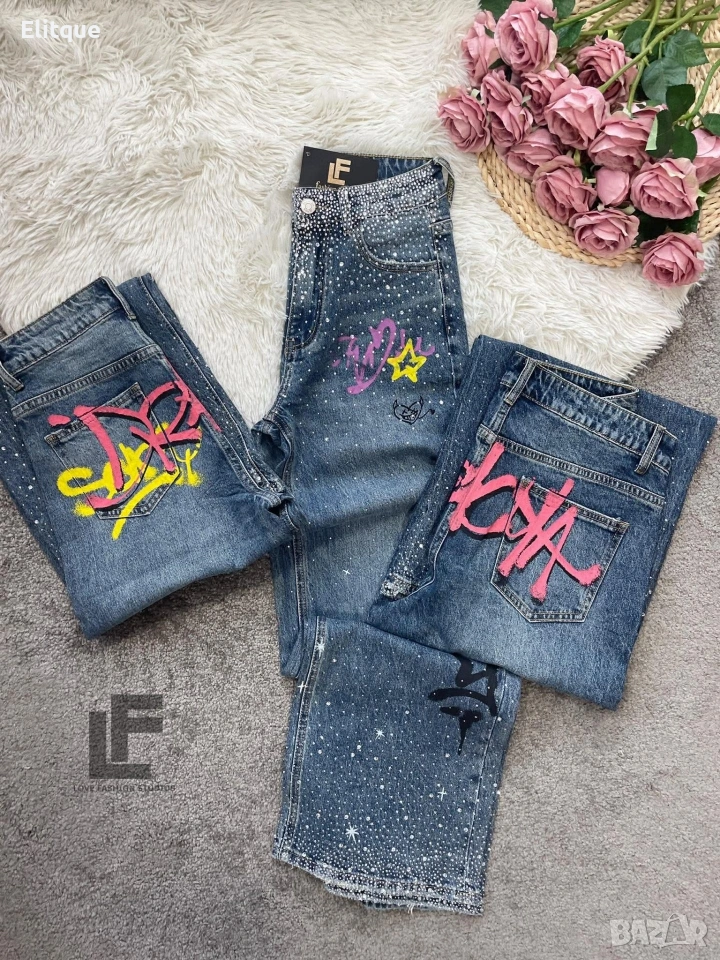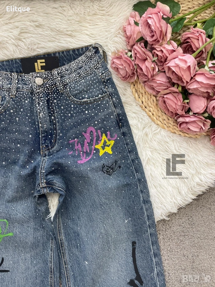 Дънки LFS Shine Bright 1051 34.90€ (68.26лв.) Материя: Деним със средна обща еластичност и по-висока на колана ( 75% памук, 25% полиестър ) Кройка: Кройката е с прави, широки крачоли, издължаваща, средна към висока талия, ръчно рисувaни и декорирани с камъчета #LFS Стилистите съветват: Любима кройка и стилен цвят, от които не можем да свалим очи. Точно тези са със средна към висока талия, прави с издължаващ ефект! Излишно е да казваме, че са в графа #musthave, но ако все пак се чудите дали имате нужда от тях и с какво ще ги съчетаете, казваме Ви – да, имайте ги и ги носете смело с всичко в гардероба си от ризи до дантелени блузи или oversize тениски. Дължина: Цяла дължина 100 см, дължина от вътрешната част на крачола 75 см Размер на снимката – S