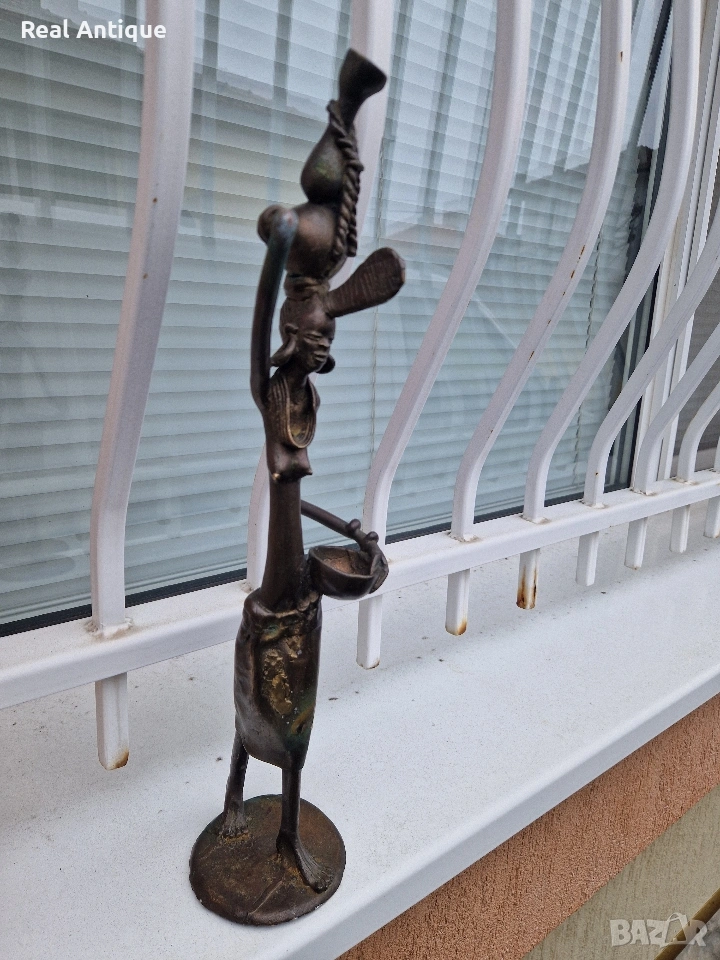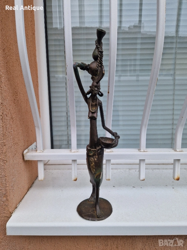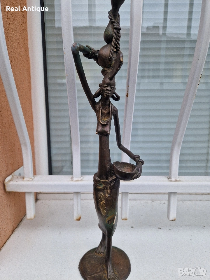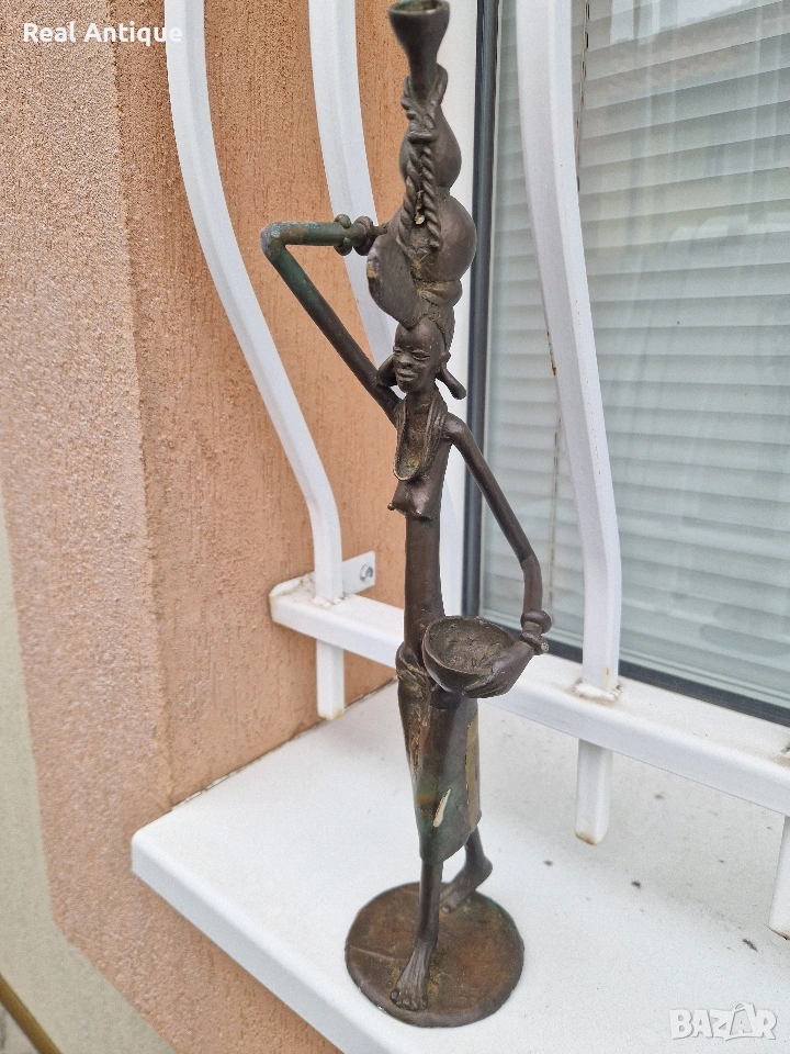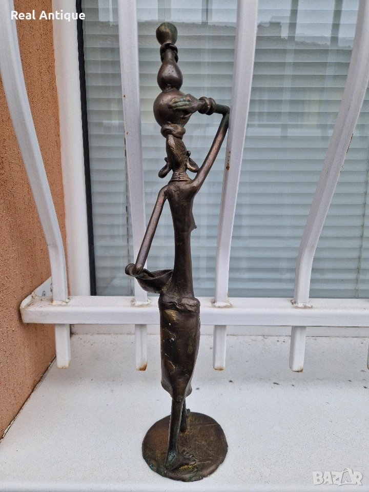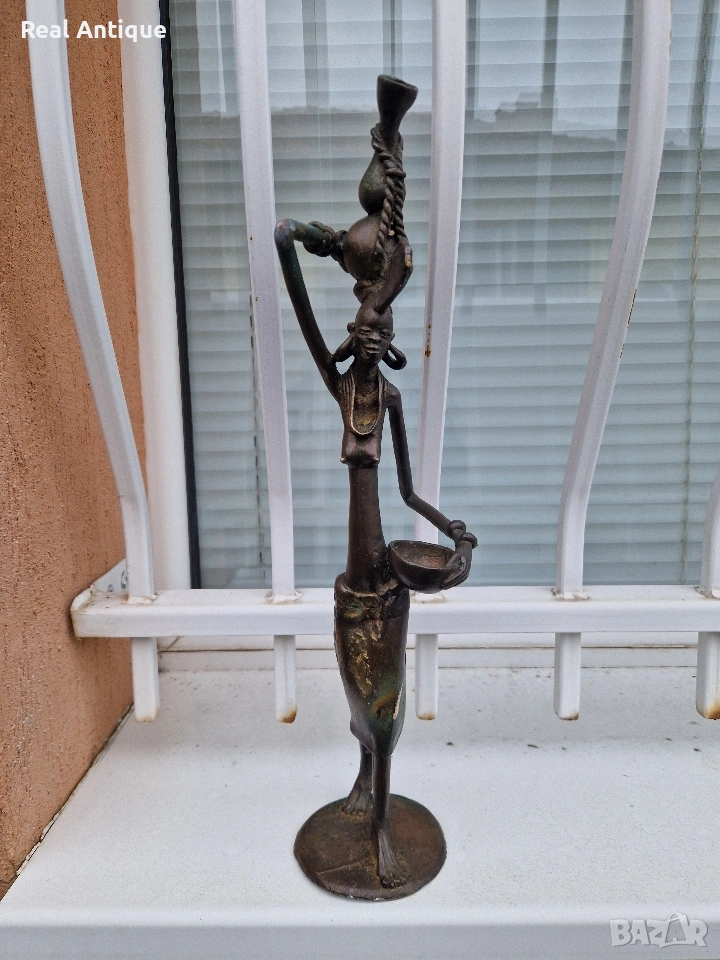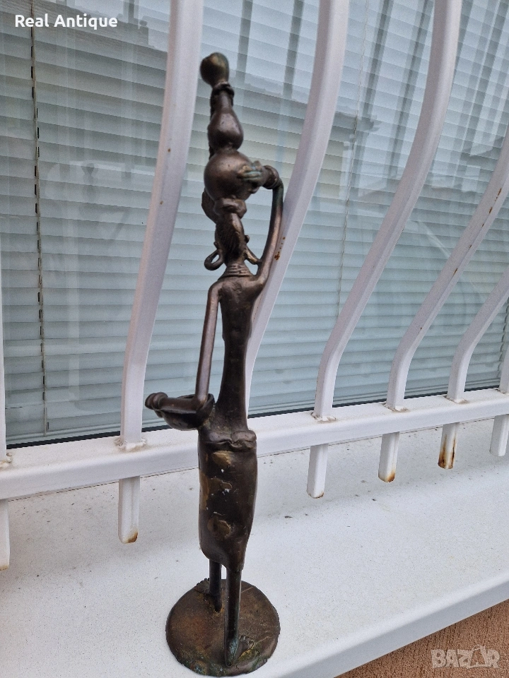 Продавам страхотна антикварна африканска бронзова фигура статуетка скулптура пластика в перфектно състояние без забележки. Тежка здрава масивна. Височина 44 см. Прекрасно допълнение към интериора на Вашия дом офис вила . Подходяща и за подарък. Работя с всички куриери. Отговарям бързо.