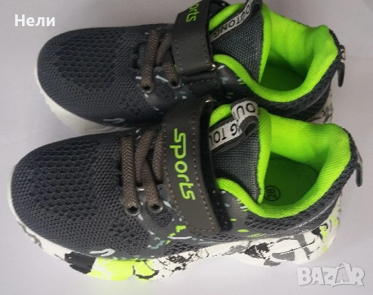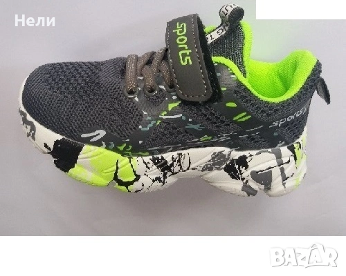 Детски маратонки в тъмно сиво и неон → Обява 54214224