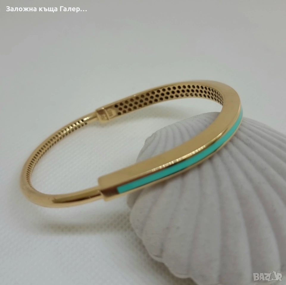 Златна твърда гривна 585 (14 карат) с емайл – елегантен и изискан аксесоар! → Обява 54214563