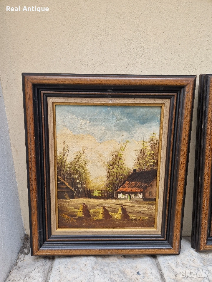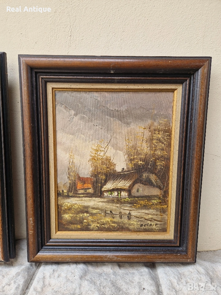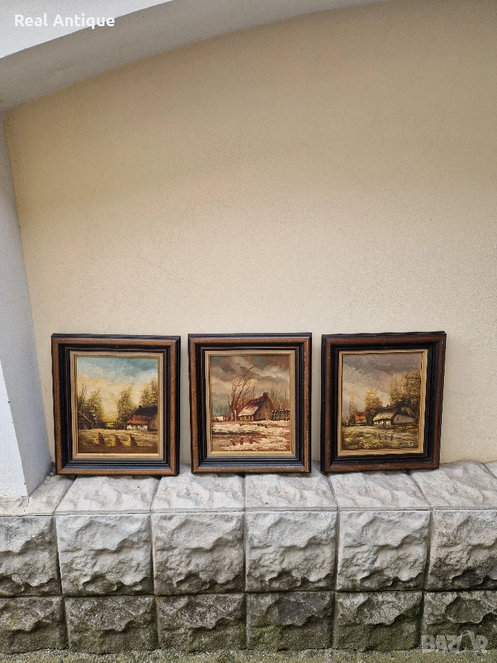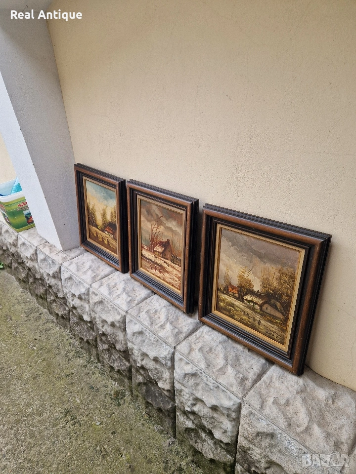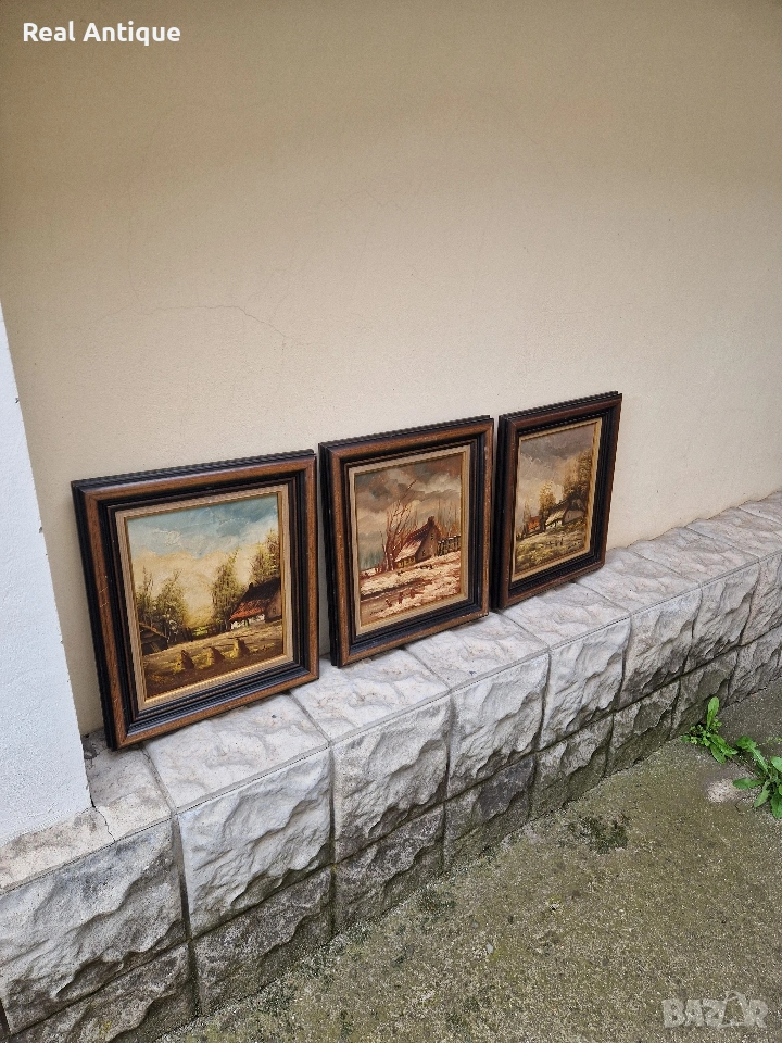 Прекрасен антикварен лот от 3 авторска картини масло върху платно