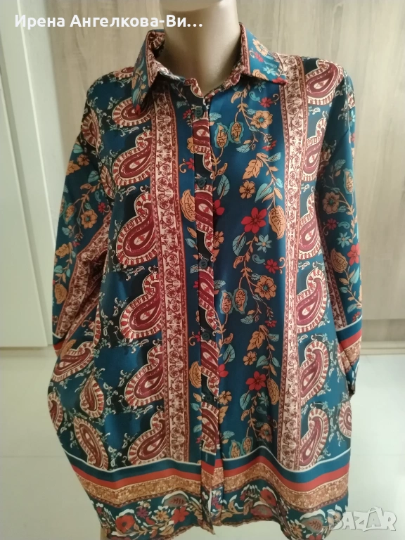 Дамска сатенена риза , снимка 1 - Ризи - 54214806 Дамска сатенена риза , снимка 2 - Ризи - 54214806 1/2