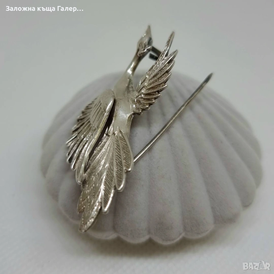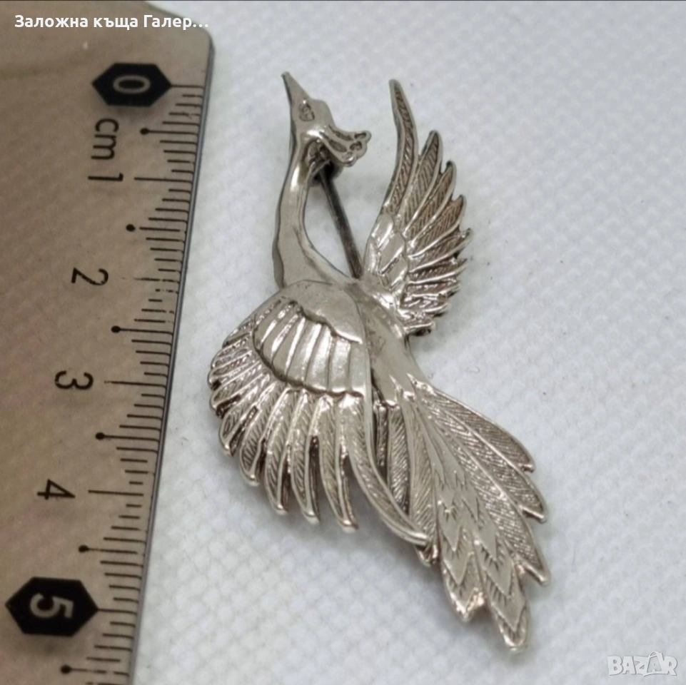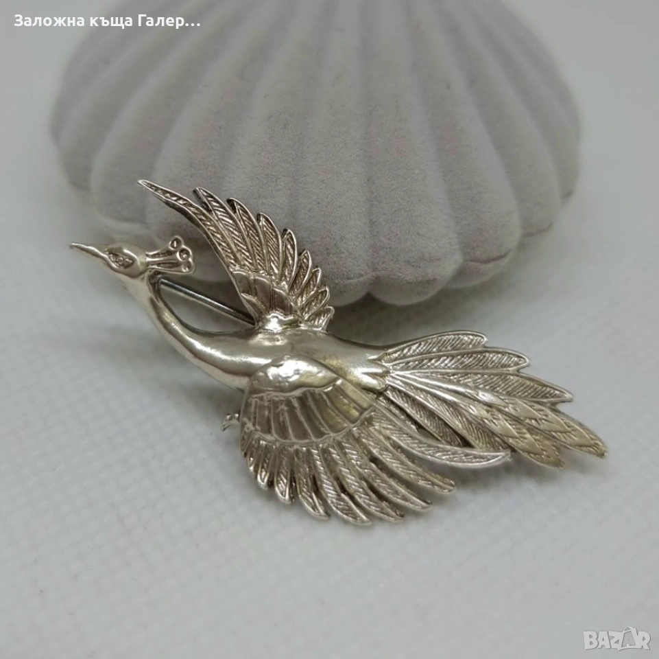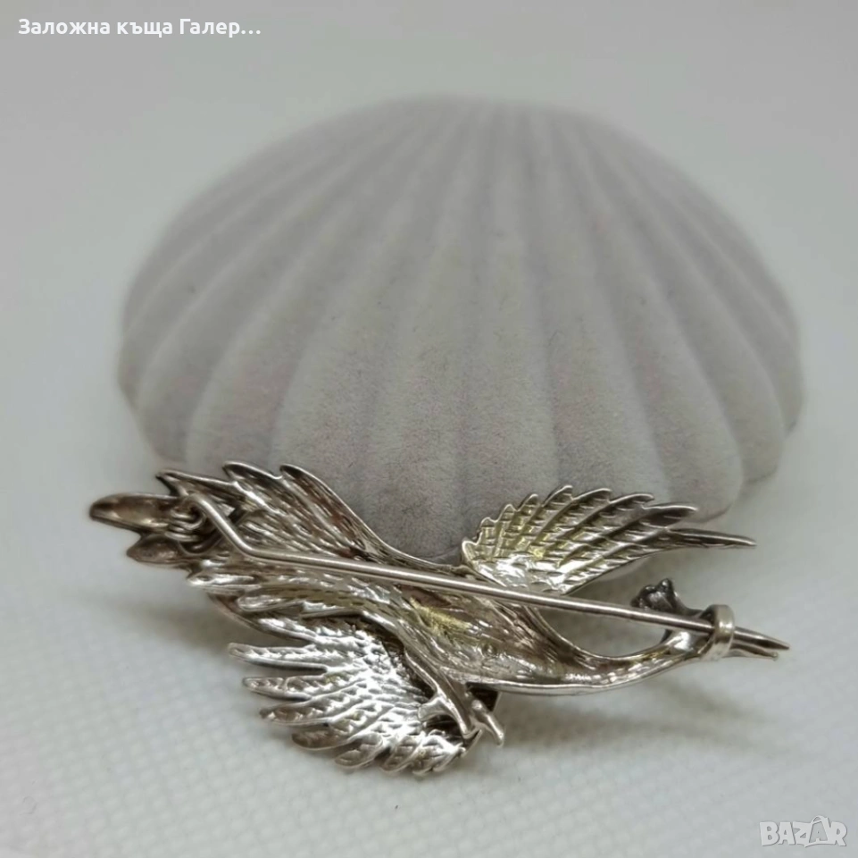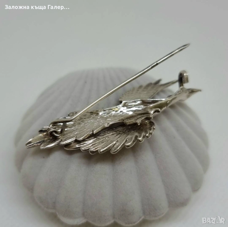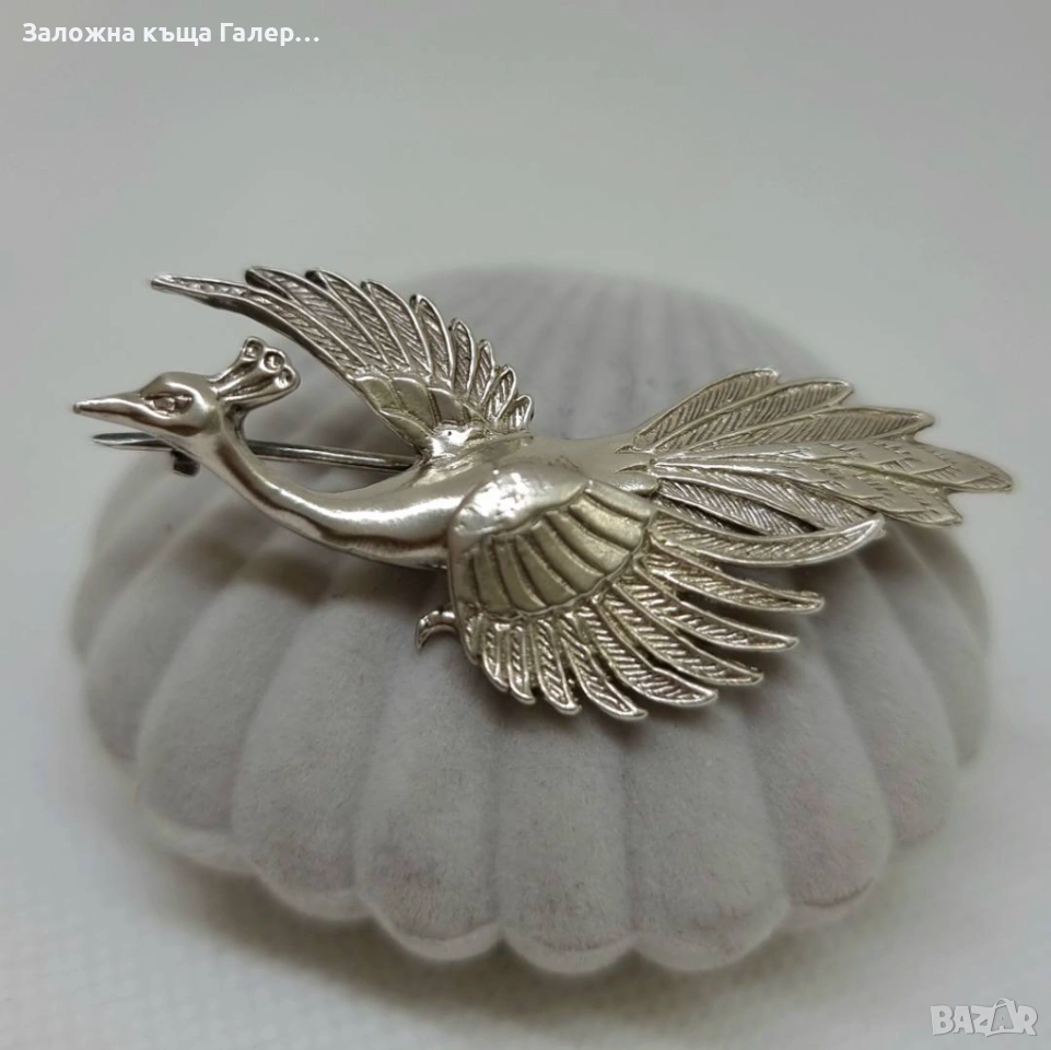 Винтидж сребърна брошка 925 „Птица Феникс“ – 6,24 г → Обява 54214821