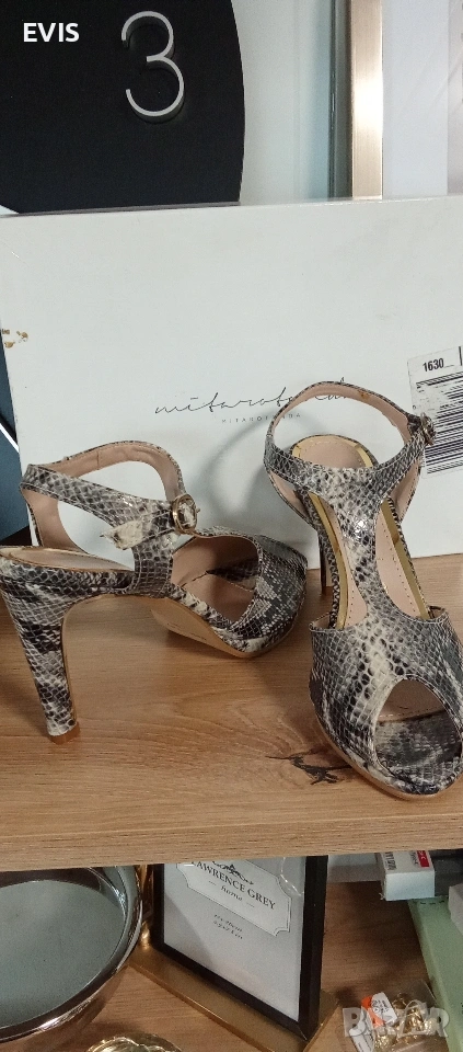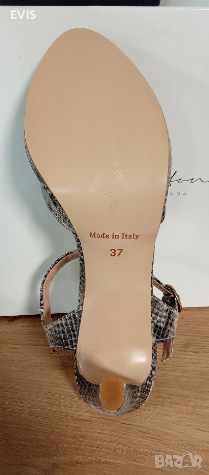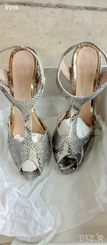 Луксозни сандали Mitarotonda (Made in Italy) – Естествена кожа Продавам изключително елегантни дамски сандали на италианския бранд Mitarotonda. Обувките са чисто нови, предлагат се в оригинална кутия и са със стилен змийски принт (python effect), който придава изискан завършек на всяка визия. Характеристики: Марка: Mitarotonda Произход: Произведени в Италия (Made in Italy)