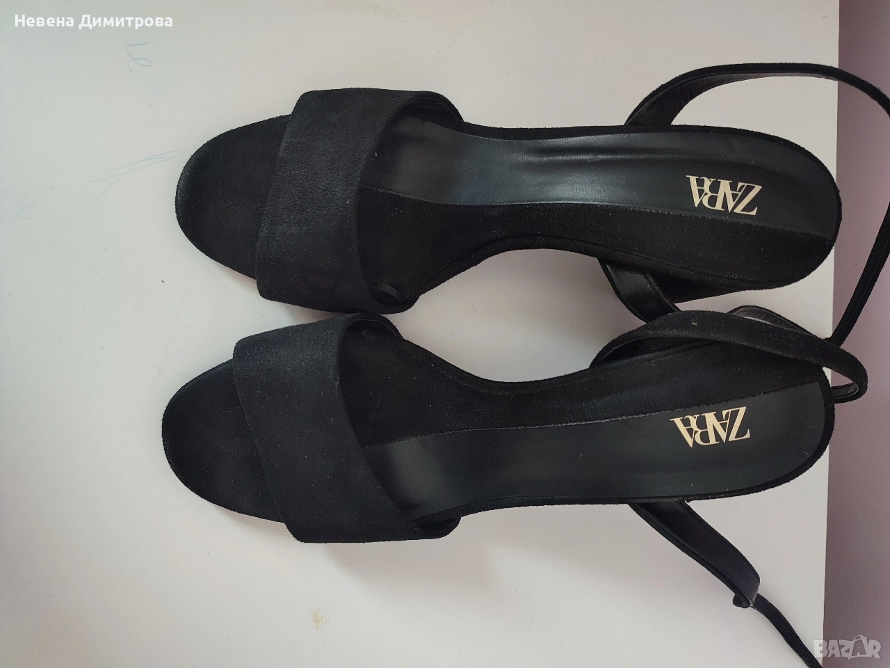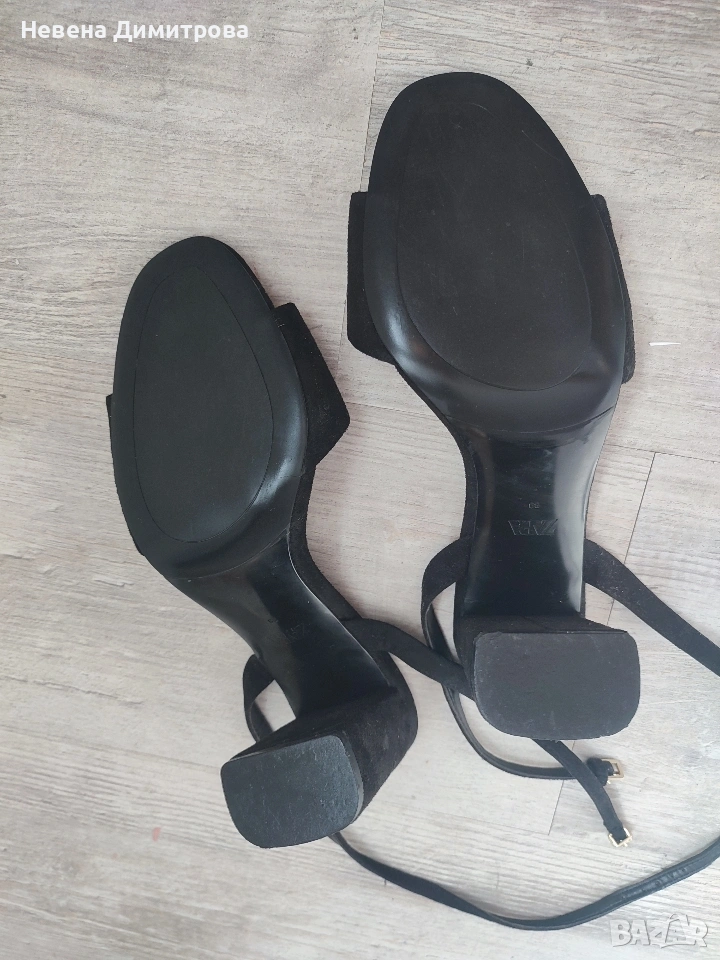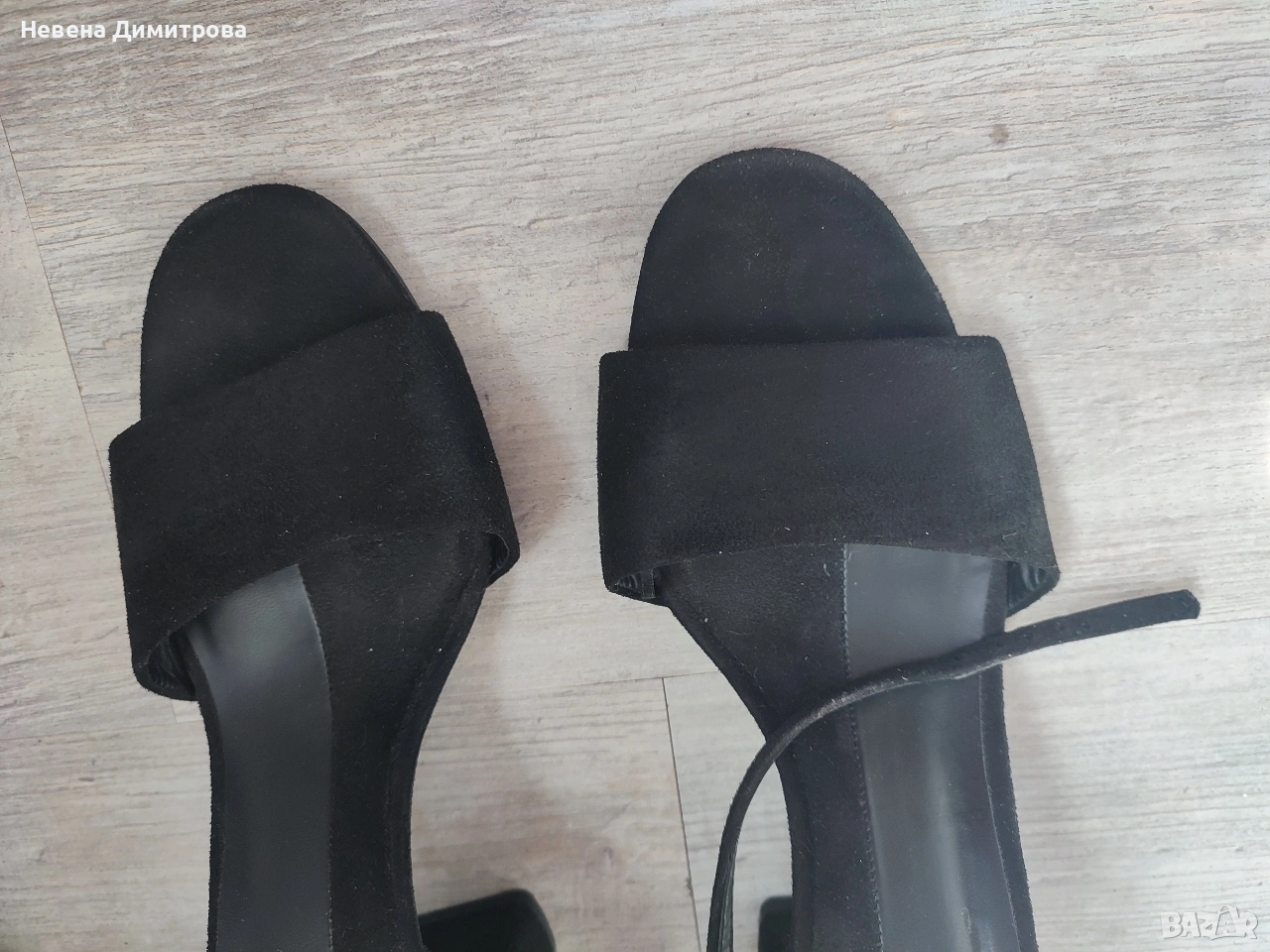 Черни велурени сандали с дебел ток 39 номер → Обява 54215192