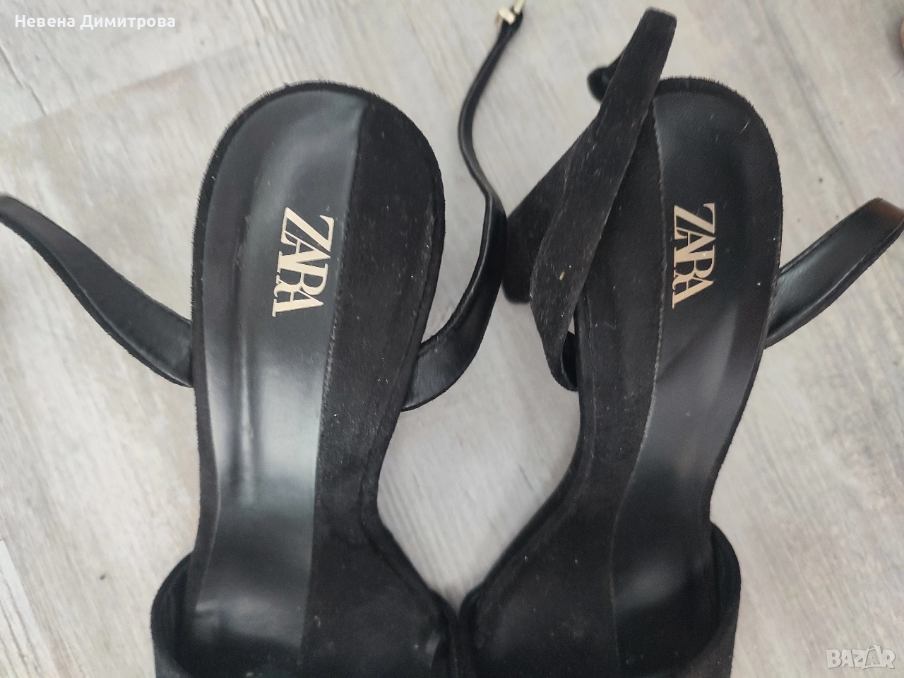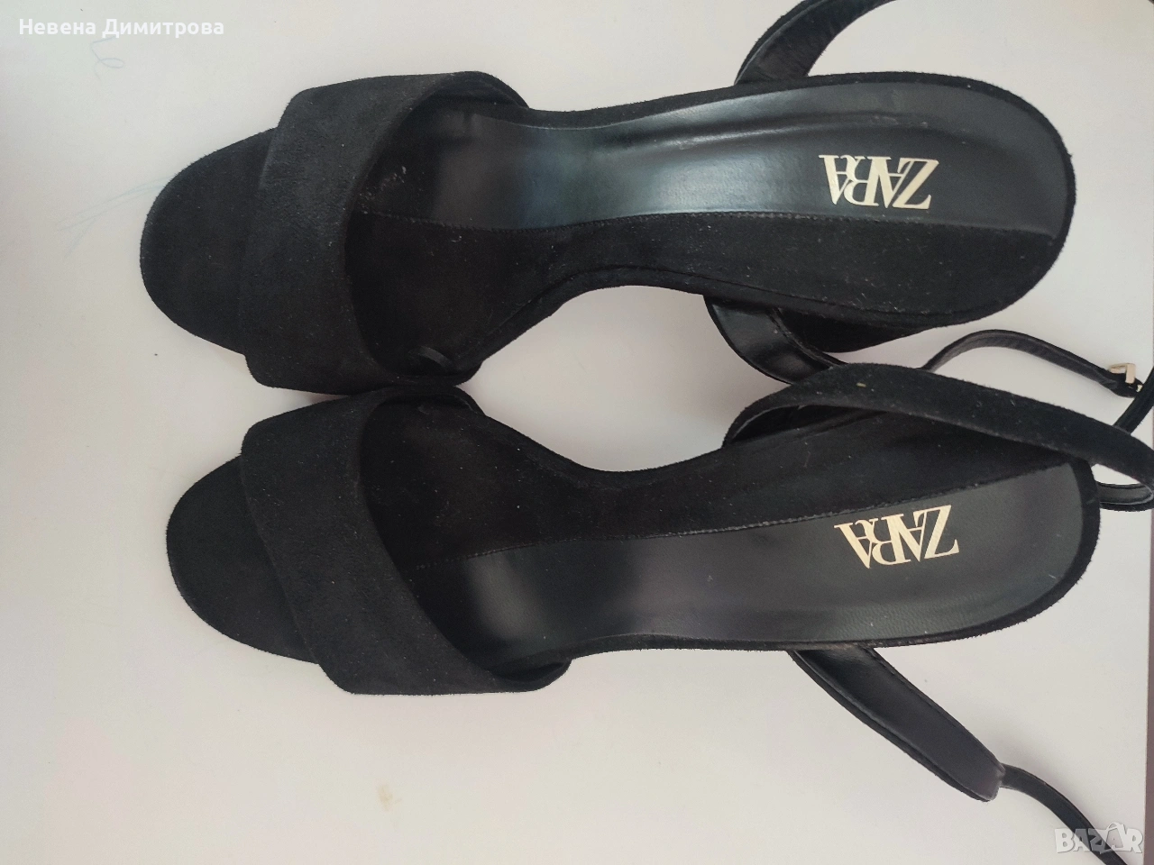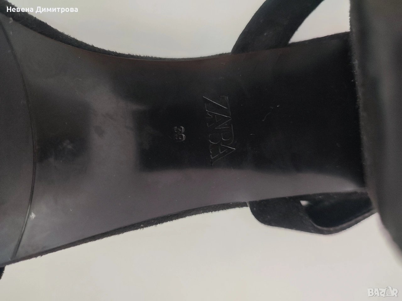 Черни велурени сандали с дебел ток 39 номер → Обява 54215192