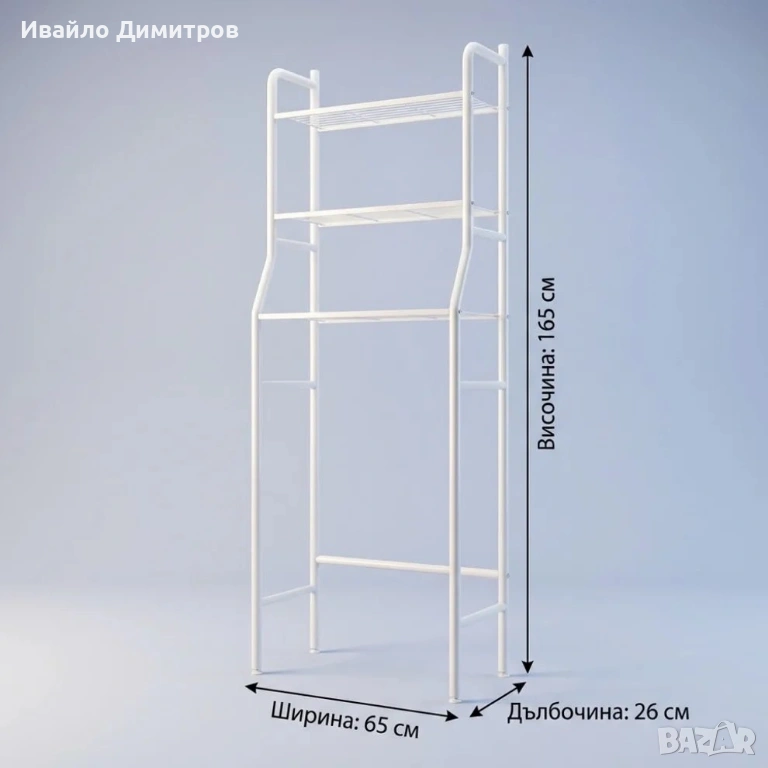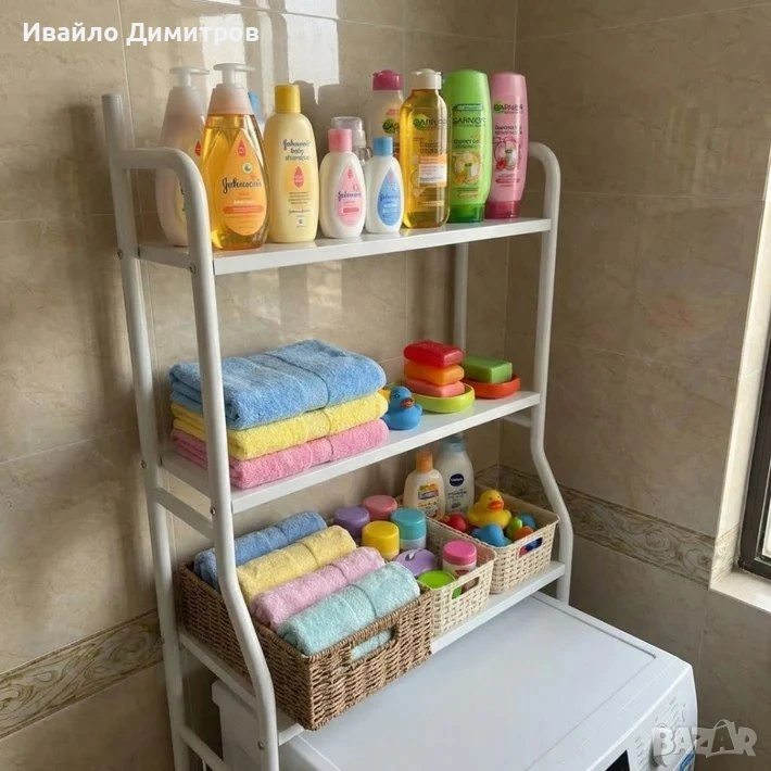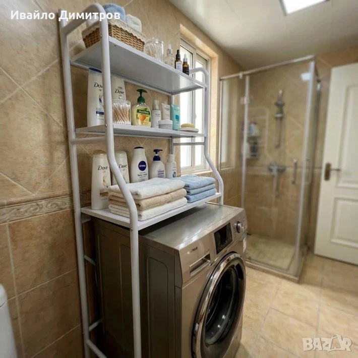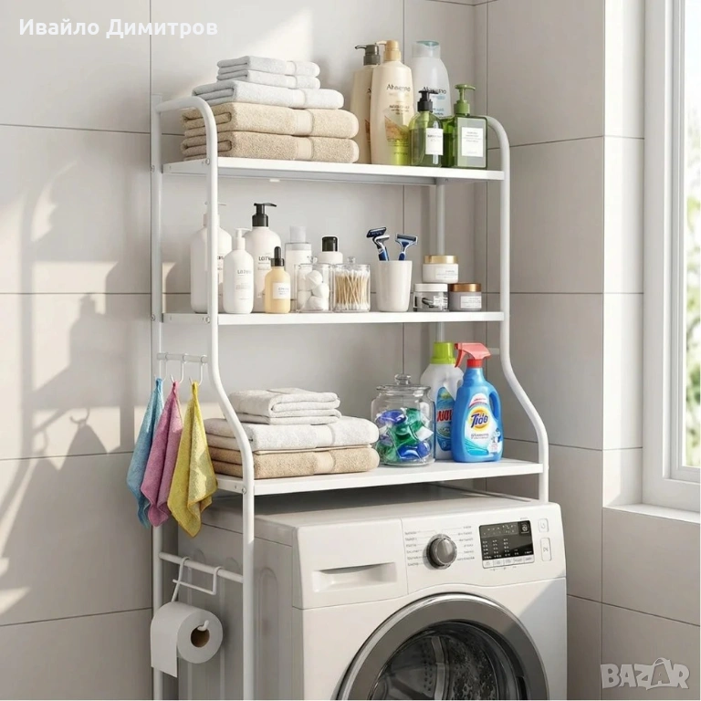 Етажерката с 3 рафта съчетава стил и функционалност, идеална за поставяне над пералня, сушилня или в банята.