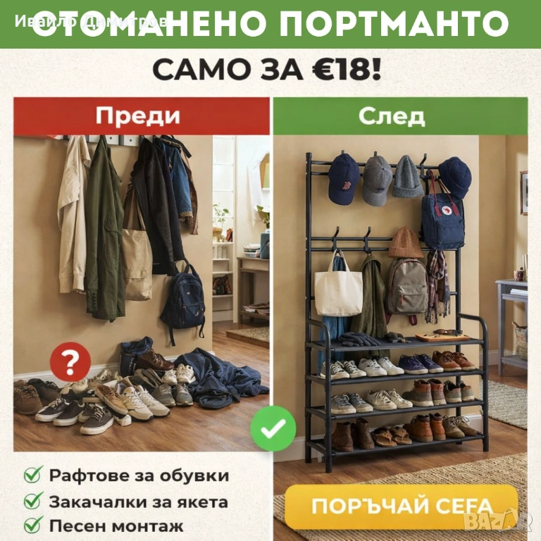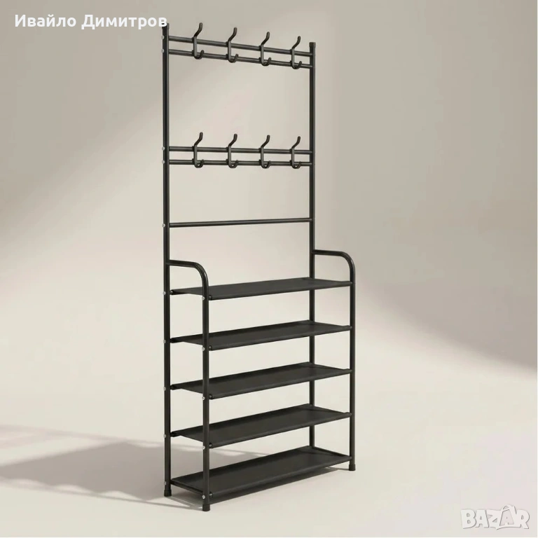 Многофункционален рафт за обувки със закачалки. Портманто (стоманено)
