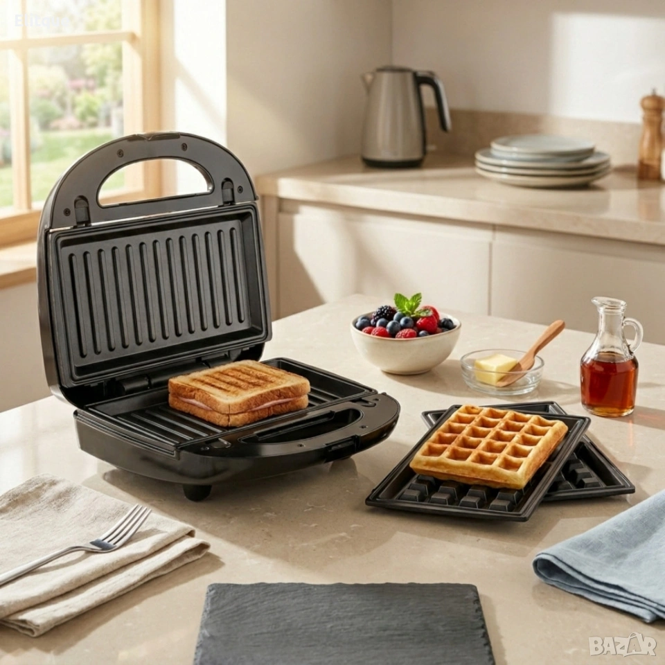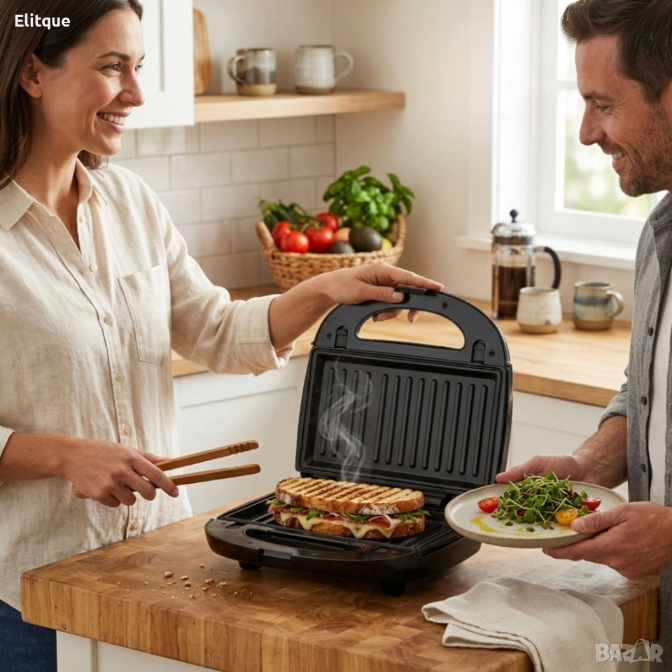 Мощност: 750 W Захранване: 220–240 V / 50–60 Hz Размер на плочите: 22.5 x 12.5 cm Материал на панела: декоративен неръждаем елемент Контрол: автоматичен термоконтрол и два светлинни индикатора (включено/нагрев) Безопасност: топлоизолирана дръжка и щипка за заключване доставка с Еконт