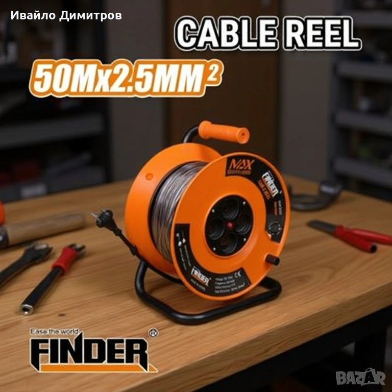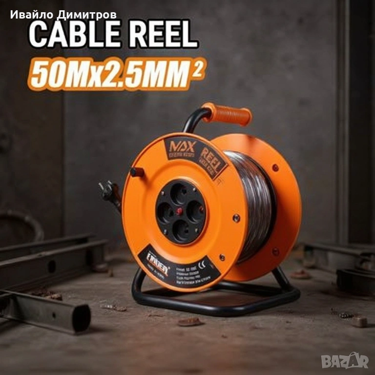 Макарата е оборудвана с 50-метров кабел със сечение 2.5 мм², който осигурява висока проводимост и надеждна работа дори при по-голямо натоварване. Благодарение на четирите гнезда, могат да се включват едновременно няколко електрически инструмента или уреда, което прави работата по-удобна и ефективна.