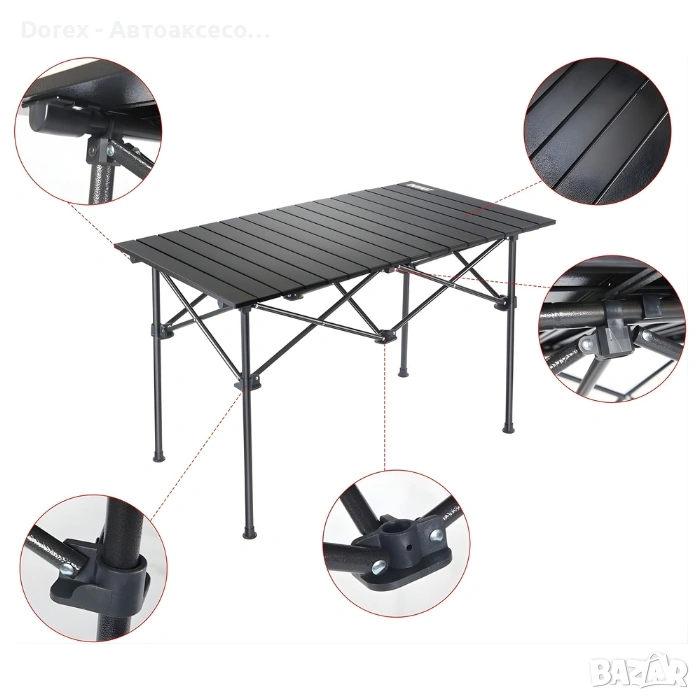 Със своя интелигентен сгъваем дизайн, масата се разгъва и прибира за секунди, без нужда от инструменти. В сгънато състояние е компактна и лесна за пренасяне, което я прави перфектен спътник при пътувания.