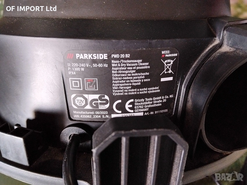 Глава Двигател за Прахосмукачка за Сухо и Мокро Почистване PARKSIDE 1300W PWD 20 B2