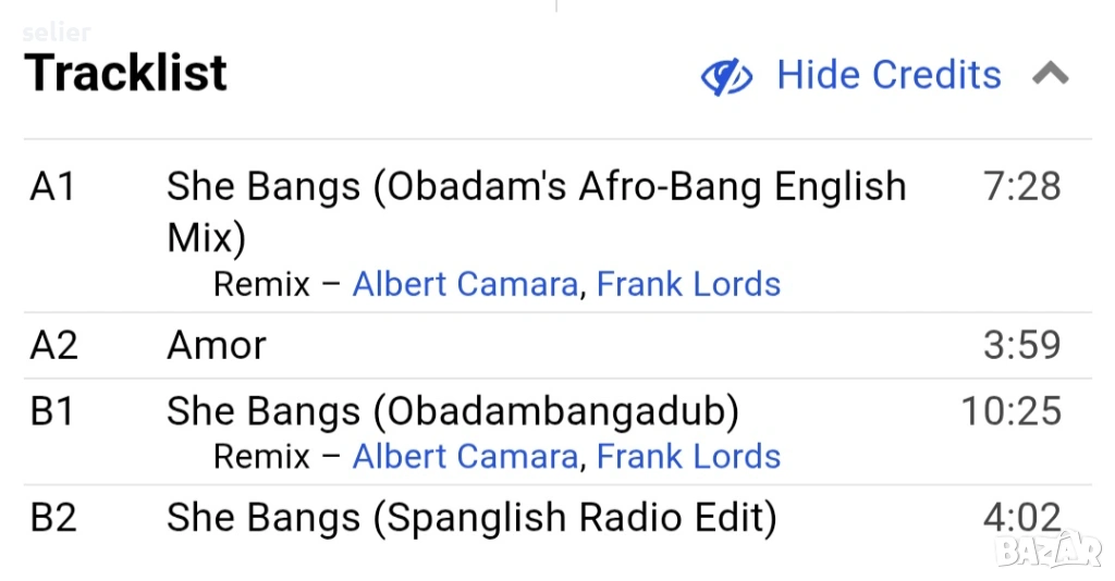 Плочата има два хита,като едната песен я има на английски и испански.Качил съм снимка с траклиста да видите кои са песните