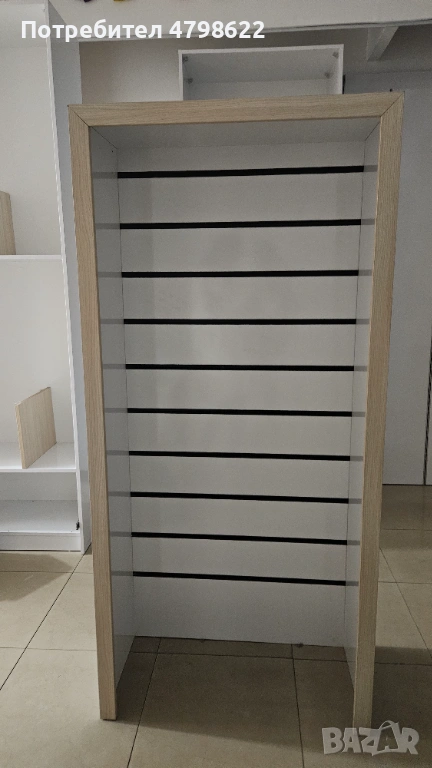 Изплозван само една година! ТОП КАЧЕСТВО. Има метални кукички за поставяне на стоката, лесно се местят и позиционират .