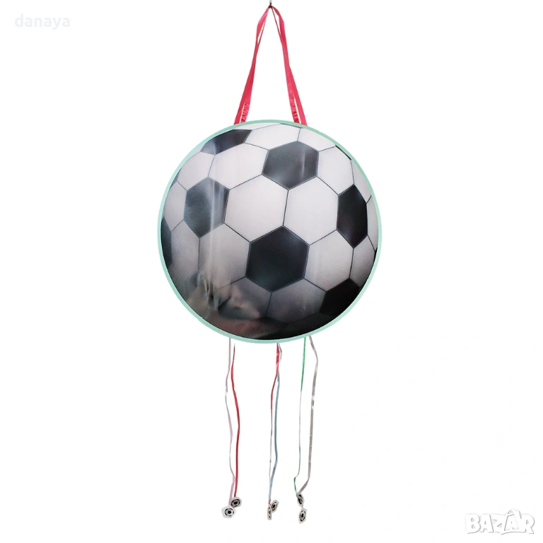 Изработена в удобен размер 40 см, пинятата се окачва лесно и е достатъчно здрава, за да издържи играта, но и лесна за отваряне при удар. Цветният дизайн и любимата форма на топка я правят любима атракция за всяко дете.