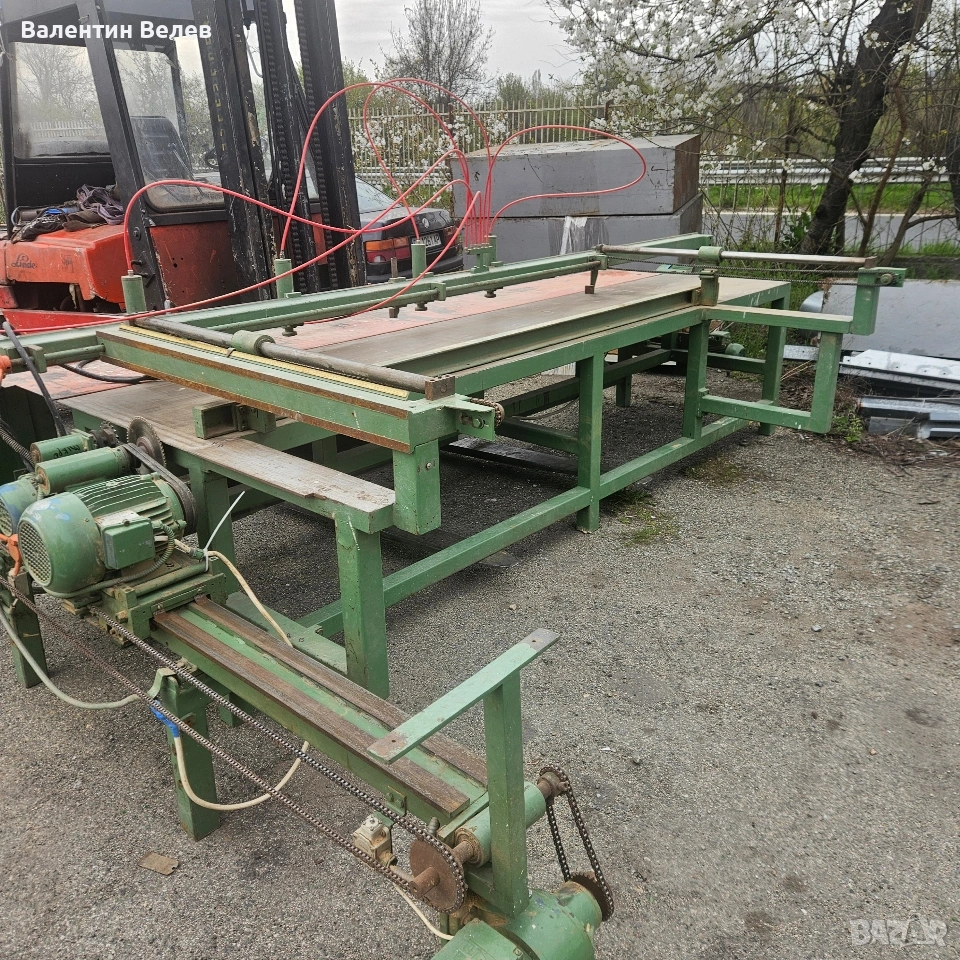 гръцки автоматичен циркуляр с подрезвачи,дължина на ряза 3600мм.ширина на ряза 1200мм. → Обява 54215501