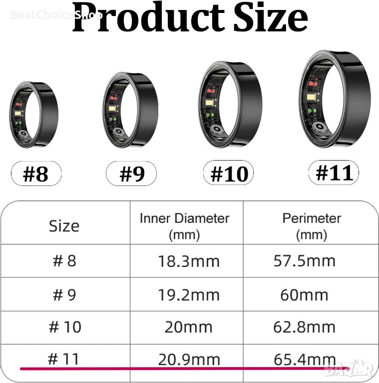 Lizzbeoal Умен пръстен за мъже и жени, фитнес тракер, здраве, пулс, кислород в кръвта, тракер за сън, водоустойчивост 5ATM за Android и iOS, размер 11, черен