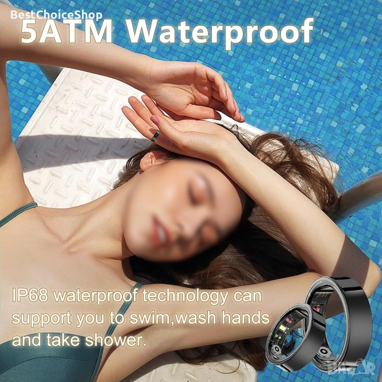 - 【Водоустойчив пръстен IP68】Издържа на плуване, миене на ръце, студен душ и дъжд, следете спортните си данни и наблюдавайте физическото си здраве във водни ситуации, което е голямо удобство за ежедневието ви. Забележка: Моля, пазете от гореща вода или пара.