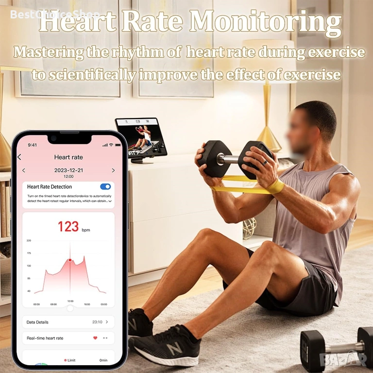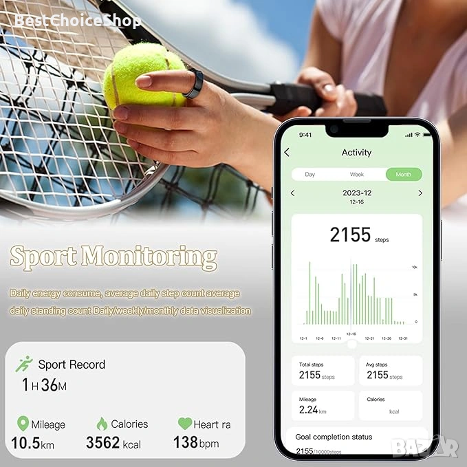 - 【Фитнес пръстен】 Автоматично събирайте ежедневни стъпки, консумация на калории и изминато разстояние. Включете спортните режими в приложението, то допълнително ще проследява вашия спортен маршрут, времето за активност и сърдечната честота по време на тренировка, което ви позволява да виждате спортните си постижения в реално време.