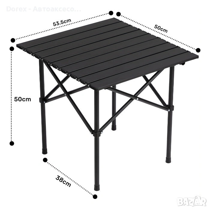 Сгъваемата къмпинг маса 55x50 см е практично и удобно решение за всякакви активности на открито – къмпинг, пикник, риболов, плаж или градина. Компактният ѝ размер я прави особено подходяща за лесно пренасяне и използване в ограничени пространства.