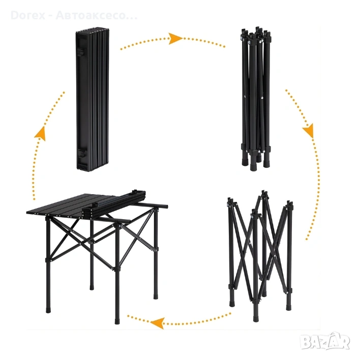Масата разполага с интелигентен сгъваем механизъм, който позволява бързо разгъване и сгъване без нужда от инструменти. В сгънато състояние заема минимално място и е удобна за транспорт и съхранение.