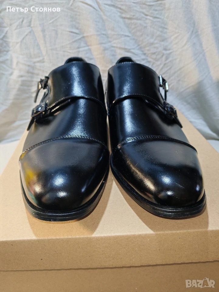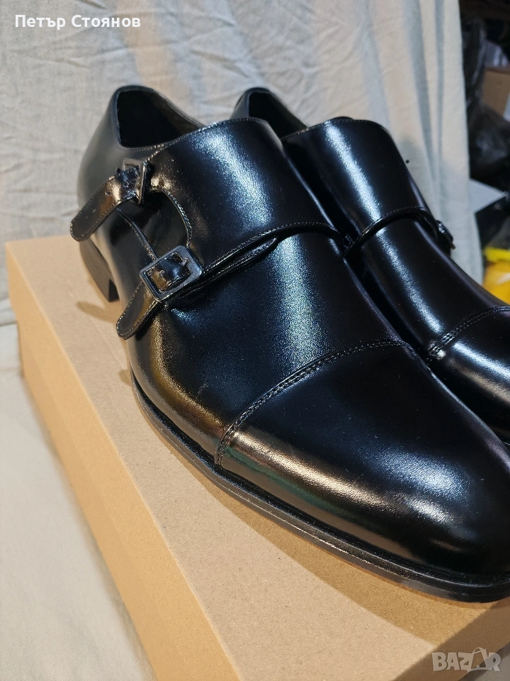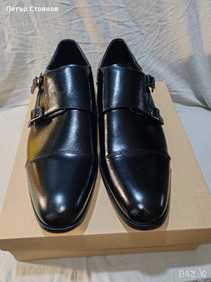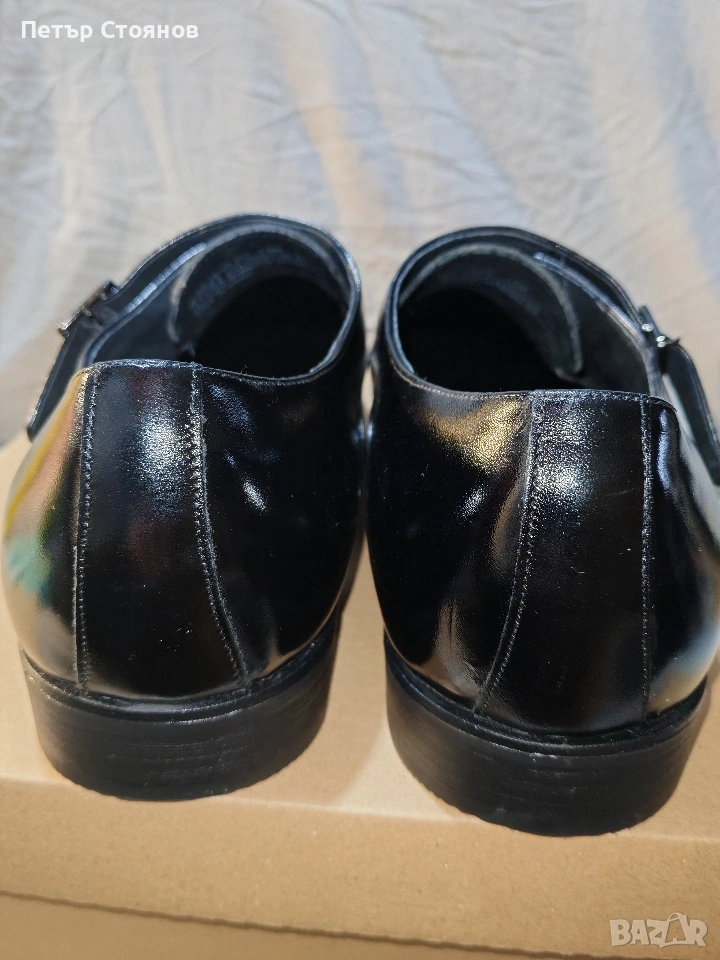 Предлагам чудесни мъжки официални обувки на марката Stacy Adams. обувките са чисто нови, но са без оригиналната кутия, защото са купени на разпродажба като мостра от магазин. Изработени са от черна естествена лачена кожа, хастарът и стелката също са от естествена кожа. Подметката е от полиуретан, имат вместо връзки по две катарами с кожен капак отгоре. Дължината на стелката е 31 см, височината на тока е 3 см. Изпращам с избран от купувача куриер и възможност за преглед и тест.