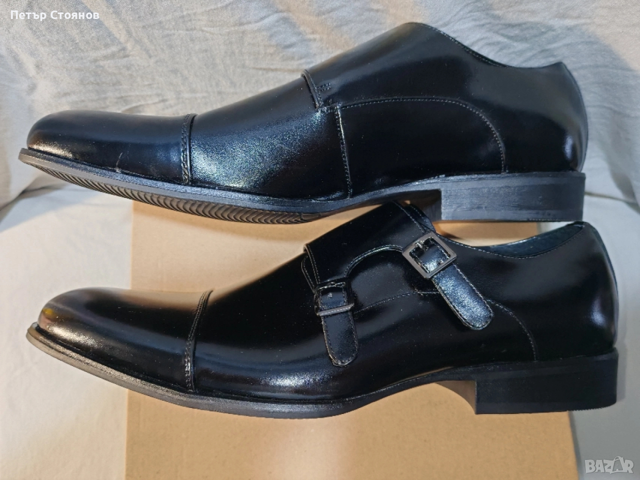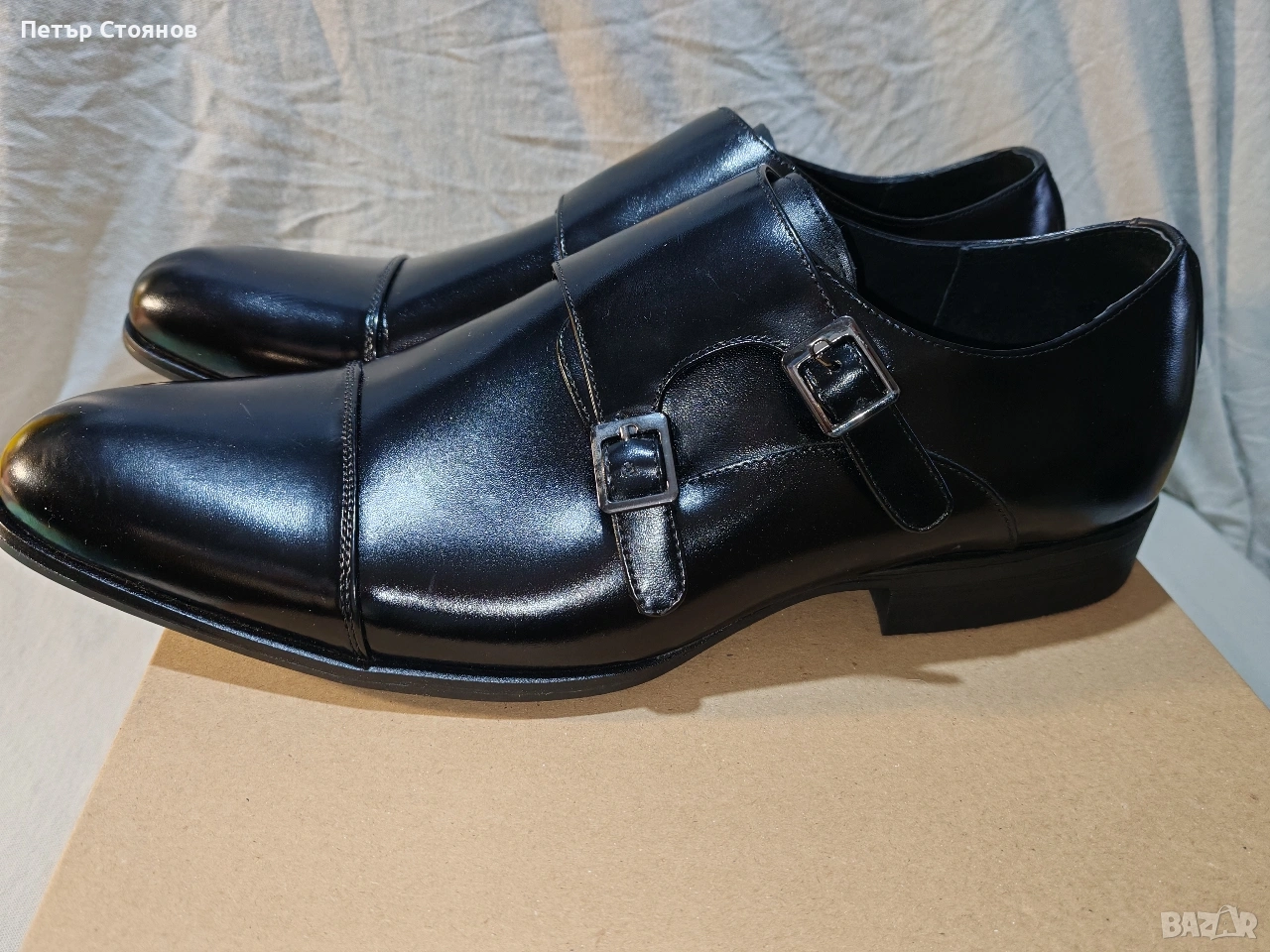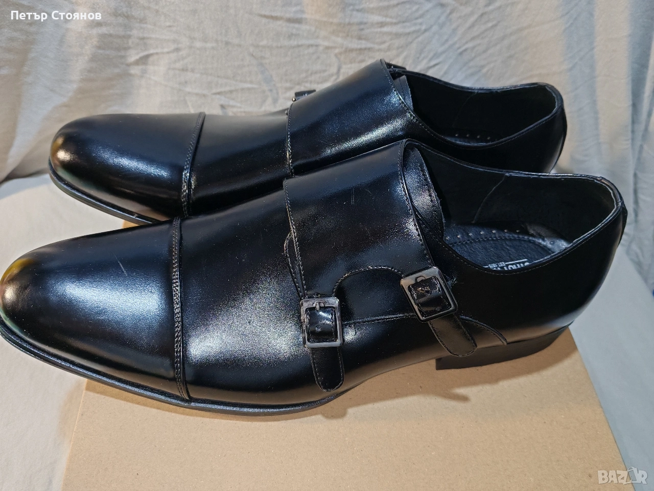 Предлагам чудесни мъжки официални обувки на марката Stacy Adams. обувките са чисто нови, но са без оригиналната кутия, защото са купени на разпродажба като мостра от магазин. Изработени са от черна естествена лачена кожа, хастарът и стелката също са от естествена кожа. Подметката е от полиуретан, имат вместо връзки по две катарами с кожен капак отгоре. Дължината на стелката е 31 см, височината на тока е 3 см. Изпращам с избран от купувача куриер и възможност за преглед и тест.