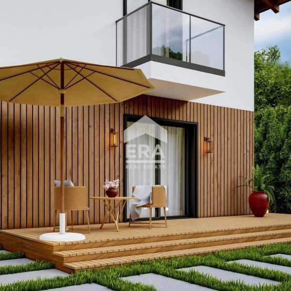 Дворът ще бъде напълно завършен и озеленен, с изградена автоматизирана поливна система и капково напояване, както и цистерна за събиране и използване на дъждовна вода. Предвидена е възможност за допълнително изграждане на басейн, както и персонализиране на довършителните работи според предпочитанията на бъдещия собственик. Къщата се предлага без включени мебели и електроуреди, като строителството е в начален етап с планирано завършване до края на 2026 г. Схемата на плащане е гъвкава 20% при предварителен договор и 80% при издаване на Акт 16.