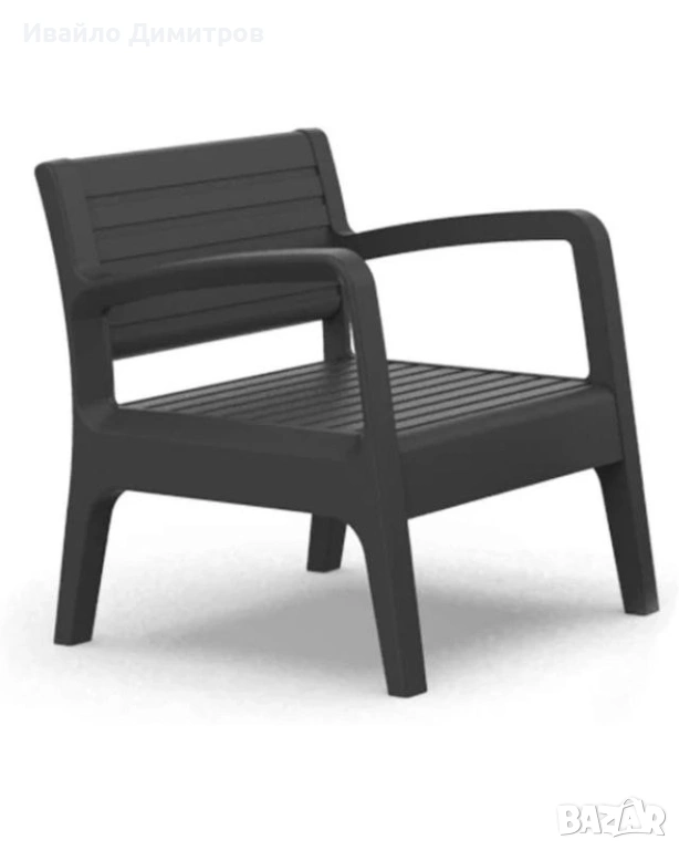 Комплектът е изработен от висококачествен полипропилен, подсилен с фибростъкло. Това го прави устойчив на слънце, дъжд и влага, без риск от ръжда или износване.