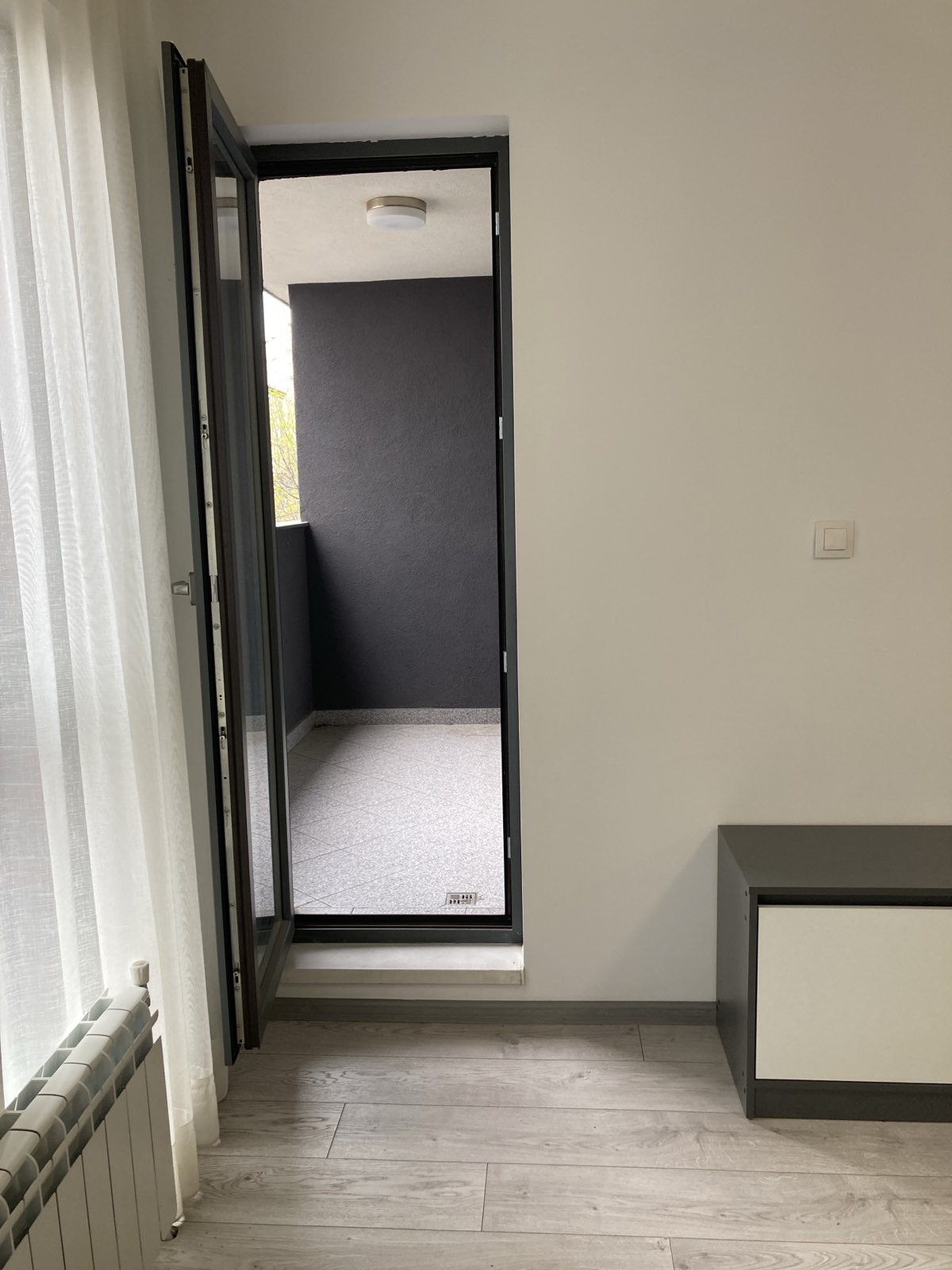 Агенция Нова Пропърти дава под наем двустаен апартамент не преходен.Обзаведен.Тераса, на която се излиза от всекидневната и спалнята.Намира се в нова красива сграда, с контрол на достъпа.Местоположението му е - на ъгъла бул.Цар Борис III и ул. Мусала.