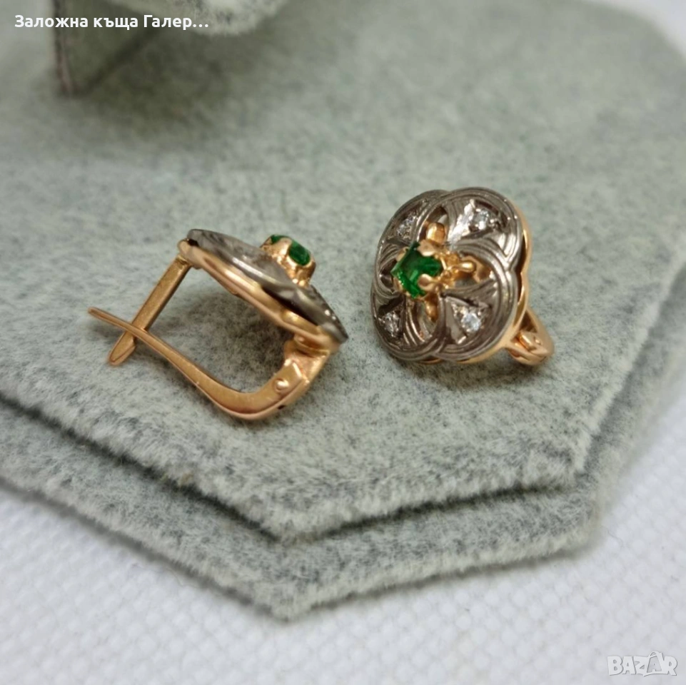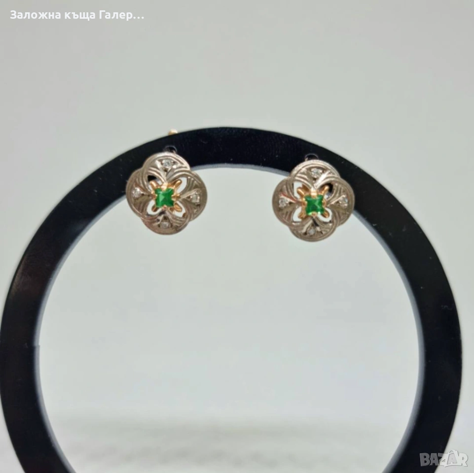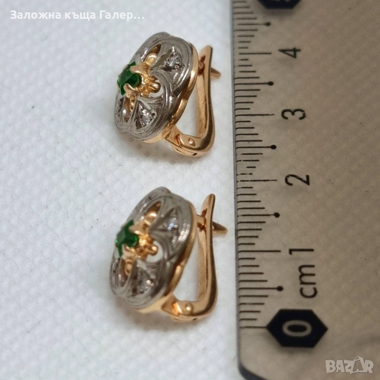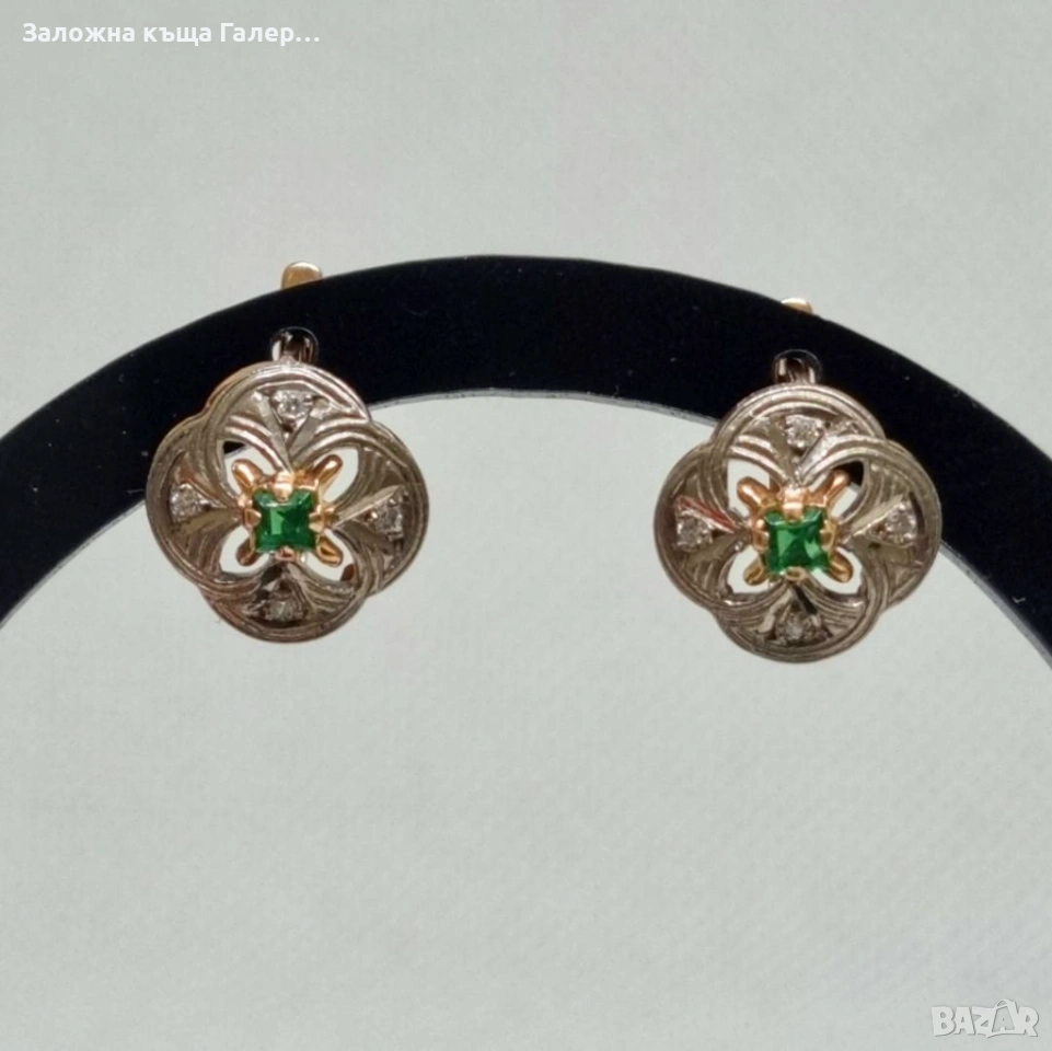 Златни обеци с фианити – съветско злато, проба 585, 5,95г
