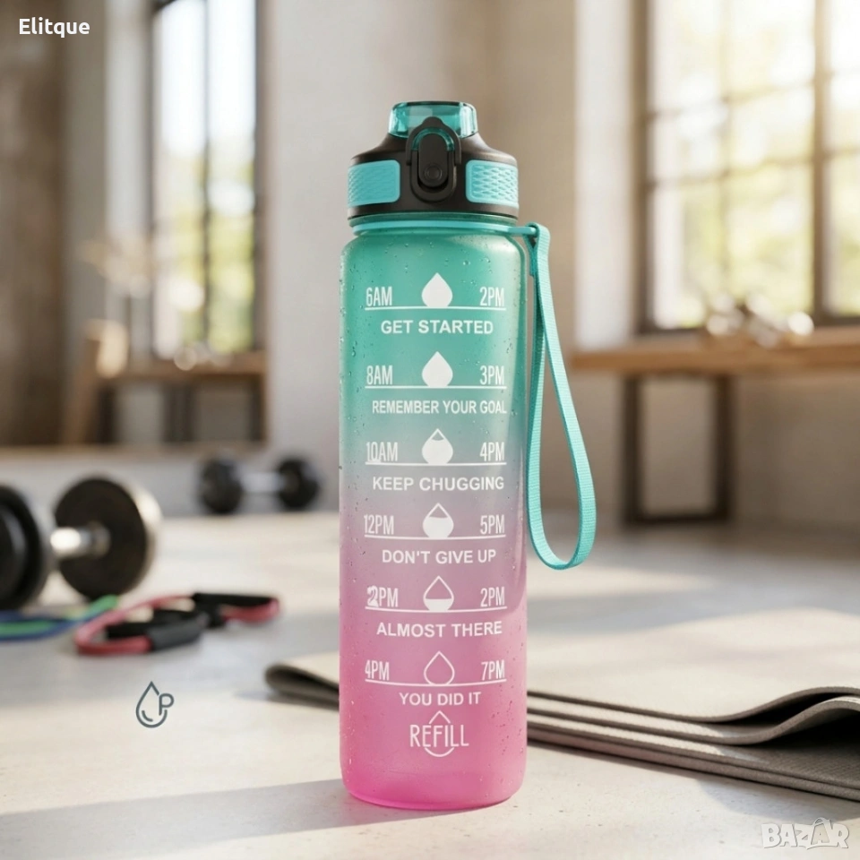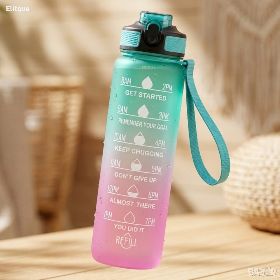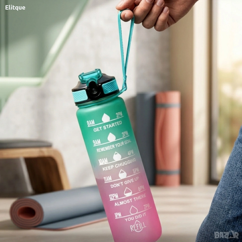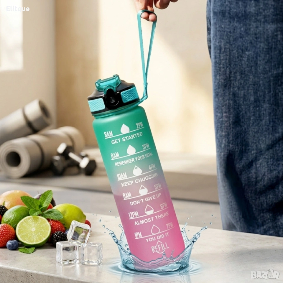 Мотивираща бутилка с мерителна скала 1L – контролирай дневния си прием на вода