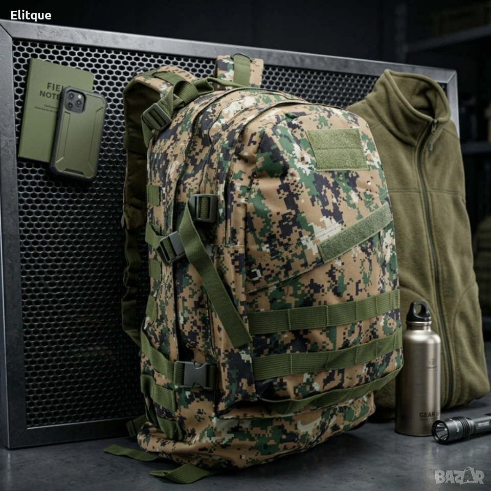 Тактическа раница 45 литра – издръжлива, удобна и готова за всяко приключение Капацитет: 45 литра Размери: 50 x 25 x 40 см Материал: износоустойчив текстил с водоустойчива гумирана вътрешност Катарами: ABS пластмаса Отделения: две основни функционални отделения Джобове: два просторни външни джоба Презрамки: регулируеми и подсилени с мека подплата; допълнителни ремъци за бедрата и гърдите Цветове: камуфлаж и зелен Подходяща за: туризъм, спорт, бойни изкуства, ежедневно ползване НЕ СА НАЛИЧНИ ЩЕ СЕ ПОРЪЧАТ СЛЕД КАТО СЕ СЪБЕРЕ 10 ПОРЪЧКИ