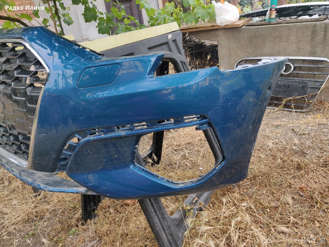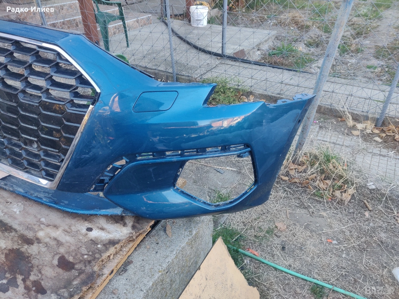 Предна Броня със Решетка Оригинална за Audi A3 S-Line 2021-2023г. Бронята е здрава няма забелешки. Решетката е здрава само никилиращата лайсна е счупено малко парче.