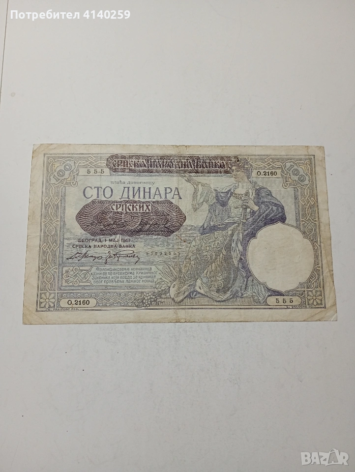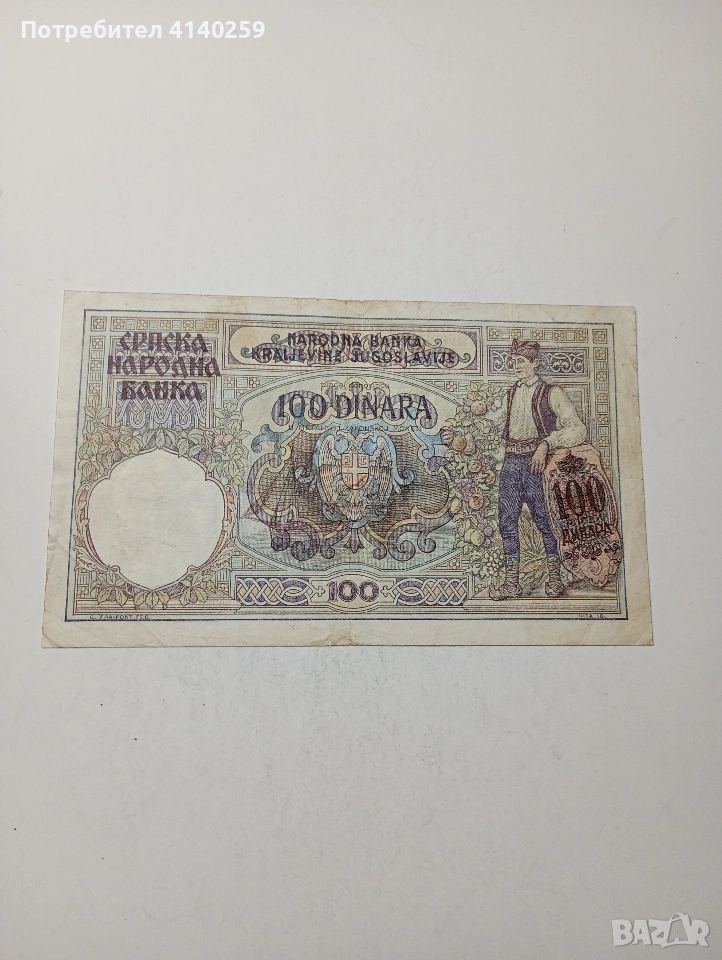 СЪРБИЯ БАНКНОТА 100 ДИНАРА 1941 Г СЪСТОЯНИЕ ВИДИМО ПОЛУЧАВАТЕ СНИМАНАТА БАНКНОТА РАЗГЛЕДАЙТЕ ДРУГИТЕ МИ ОБЯВИ ДА КОМБИНИРАТЕ ДОСТАВКА ЕКОНТ ЗА ВАРНА ЛИЧНО