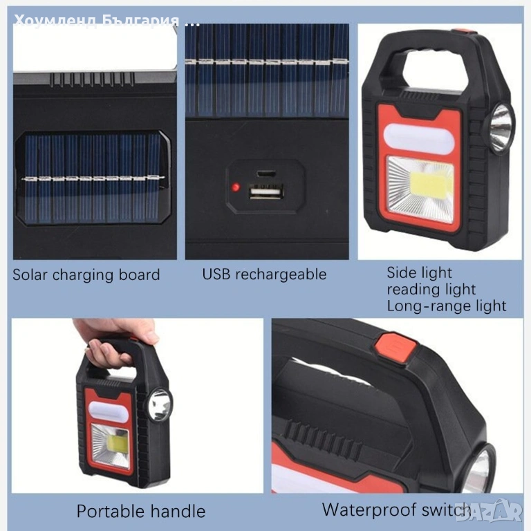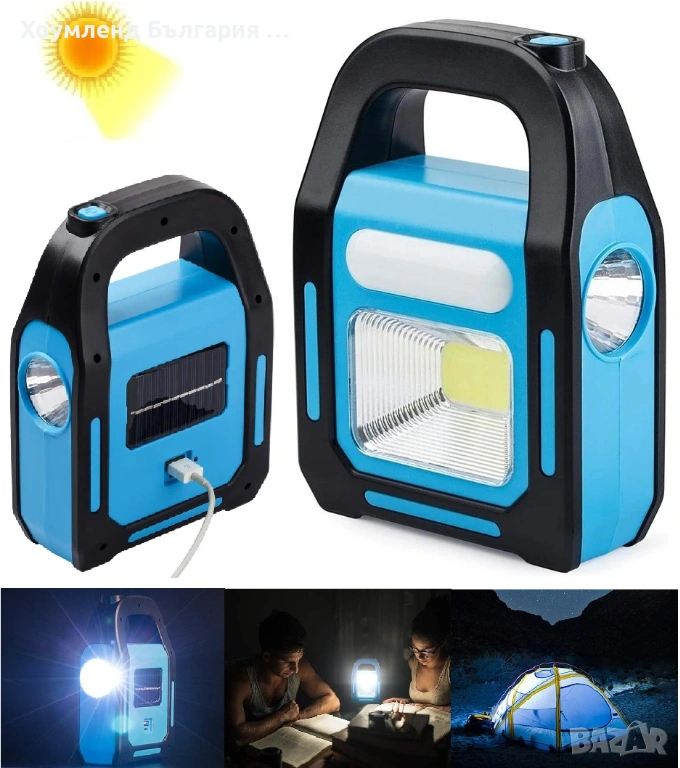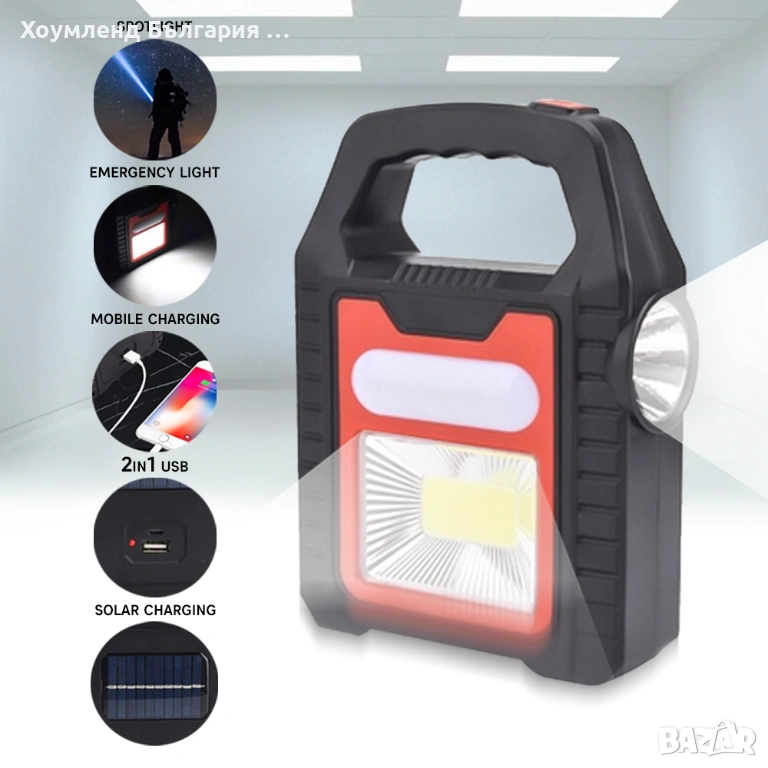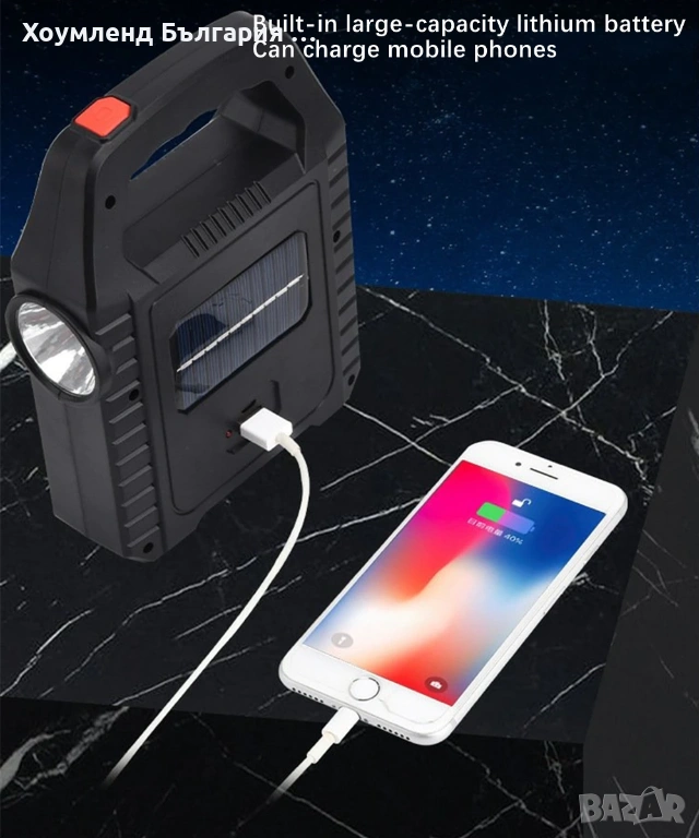 Соларен акумулаторен фенер, прожектор и зарядно 3в1
